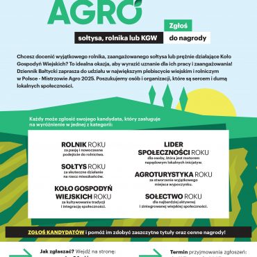 MISTRZOWIE AGRO 2025. Wielki plebiscyt rozpoczęty! Zgłoś do nagrody sołtysa, rolnika, KGW i innych przedstawicieli wiejskich społeczności