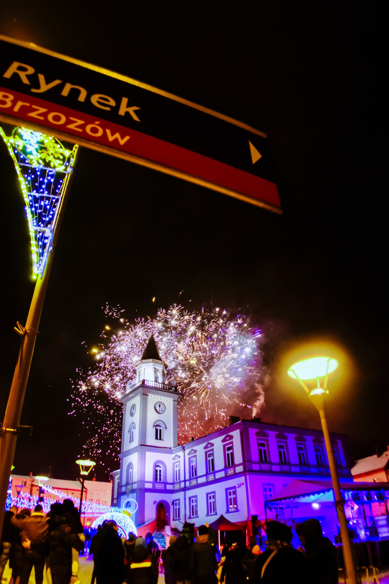 Zabawę już od godziny 22:00 rozkręcał DJ Kusy, serwując energetyczne brzmienia, które szybko porwały uczestników do tańca. Radosna atmosfera, dobra muzyka i wspólne świętowanie sprawiły, że rynek wypełnił się pozytywną energią. Tuż przed północą na scenie pojawił się Burmistrz Brzozowa Szymon Stapiński, który złożył wszystkim zgromadzonym noworoczne życzenia. Chwilę później wspólne odliczanie zakończyło się spektakularnym pokazem pirotechnicznym, który rozświetlił nocne niebo nad miastem i wywołał entuzjastyczne reakcje mieszkańców. Nie zabrakło również chwili na rozmowy, składanie życzeń oraz odpoczynek przy ciepłym poczęstunku. Uczestnicy wydarzenia mogli skorzystać z darmowej kiełbaski z grilla