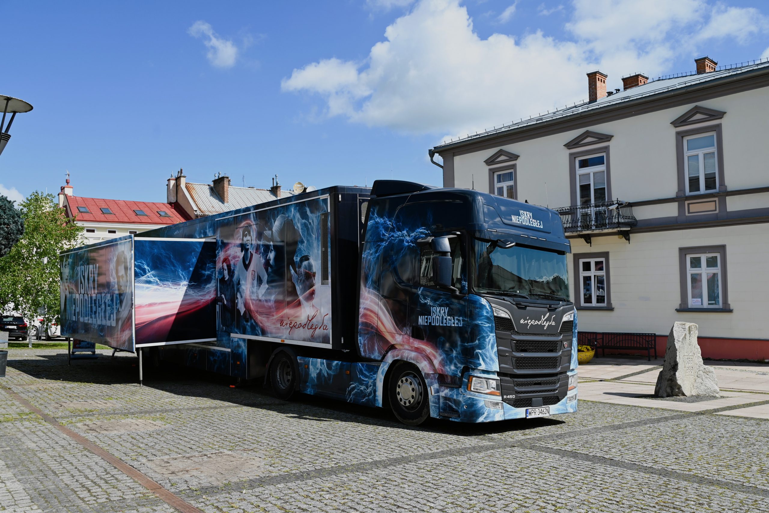 Od dzisiaj do czwartku (22 maja) na Rynku w Brzozowie można zobaczyć ISKRY NIEPODLEGŁEJ – nowoczesny spektakl multimedialny umieszczony w specjalnie zaprojektowanej naczepie ekspozycyjnej, która może podróżować po całej Polsce.