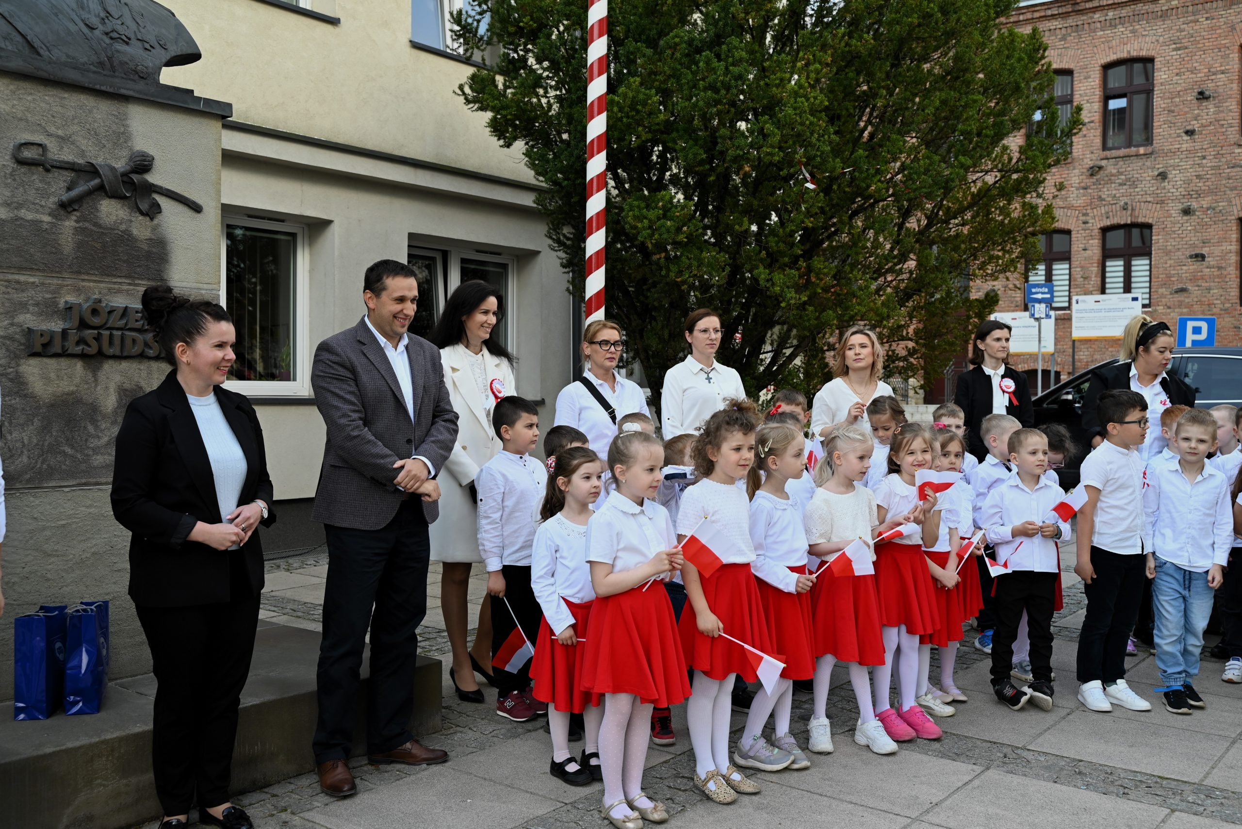 Po uroczystych programach patriotycznych w przedszkolach, dzieci wraz z dyrekcją i nauczycielami przeszły przed pomnik Marszałka Józefa Piłsudskiego. Przedszkolaki odświętnie ubrane z flagami w ręku, odśpiewały Hymn Państwowy, patriotyczne pieśni oraz zatańczyły polskie tańce narodowe.