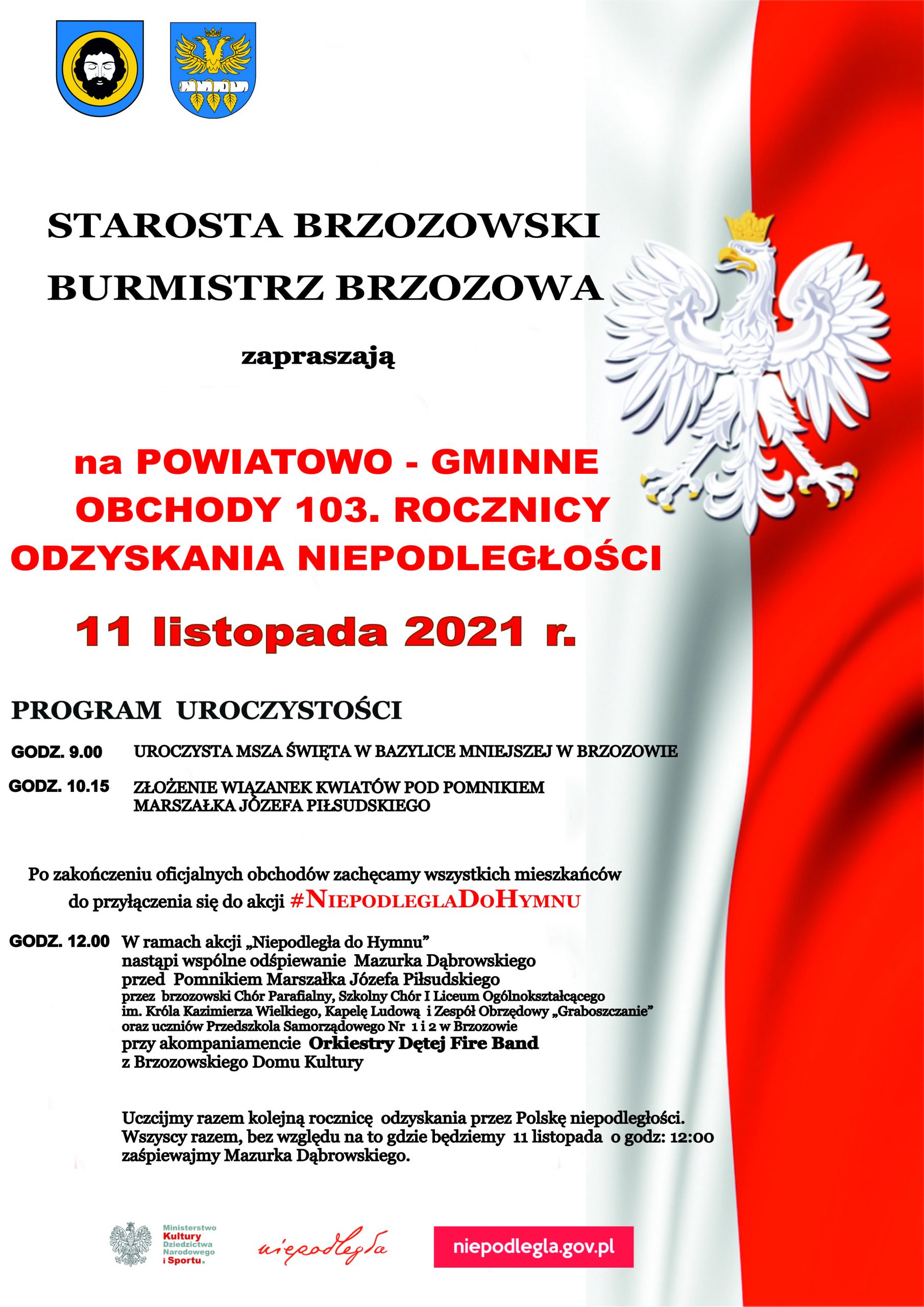 Uczcijmy wspólnie kolejną rocznicę odzyskania przez Polskę niepodległości! Wszyscy razem, bez względu na to, gdzie będziemy – 11 listopada w samo południe zaśpiewajmy Mazurka Dąbrowskiego!