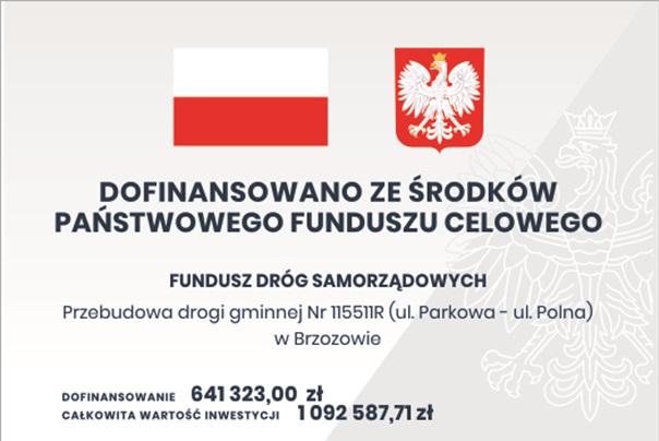 - Przebudowa drogi gminnej Nr 115511R (ul. Parkowa – ul. Polna) w Brzozowie