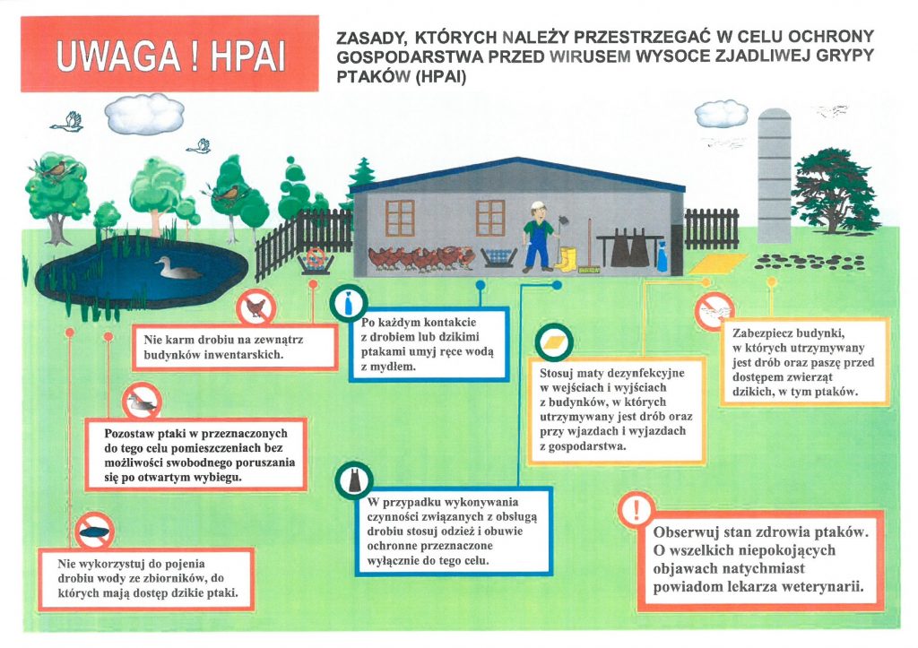 Powiatowy Lekarz Weterynarii w Brzozowie przypomina hodowcom drobiu o zasadach w celu ochrony gospodarstwa przed wirusem wysoce zjadliwej grypy ptaków HPAI.