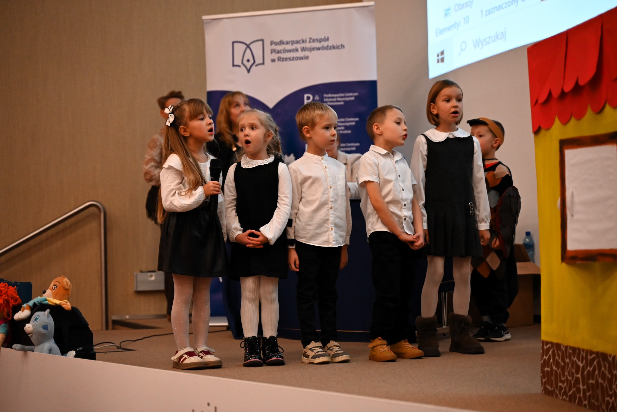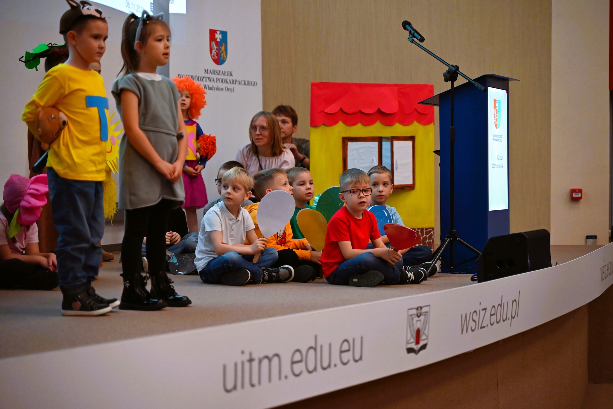 6 listopada na zaproszenie Marszałka Województwa Podkarpackiego, Władysława Ortyla, przedszkolaki z grupy „Odkrywców” wraz ze swoimi paniami: Joanną Pietryką, Anną Bober, Anną Barańską, Agatą Kuś i Natalią Miksiewicz – mamą naszej Blanki, wyruszyły do Kielnarowej, aby wziąć udział w podsumowaniu trzyletniego pilotażu „Wsparcia dwujęzyczności w podkarpackich przedszkolach”. Był to dla wszystkich uczestników wyjazdu dzień pełen emocji, wzruszeń oraz radości z osiągniętych sukcesów.