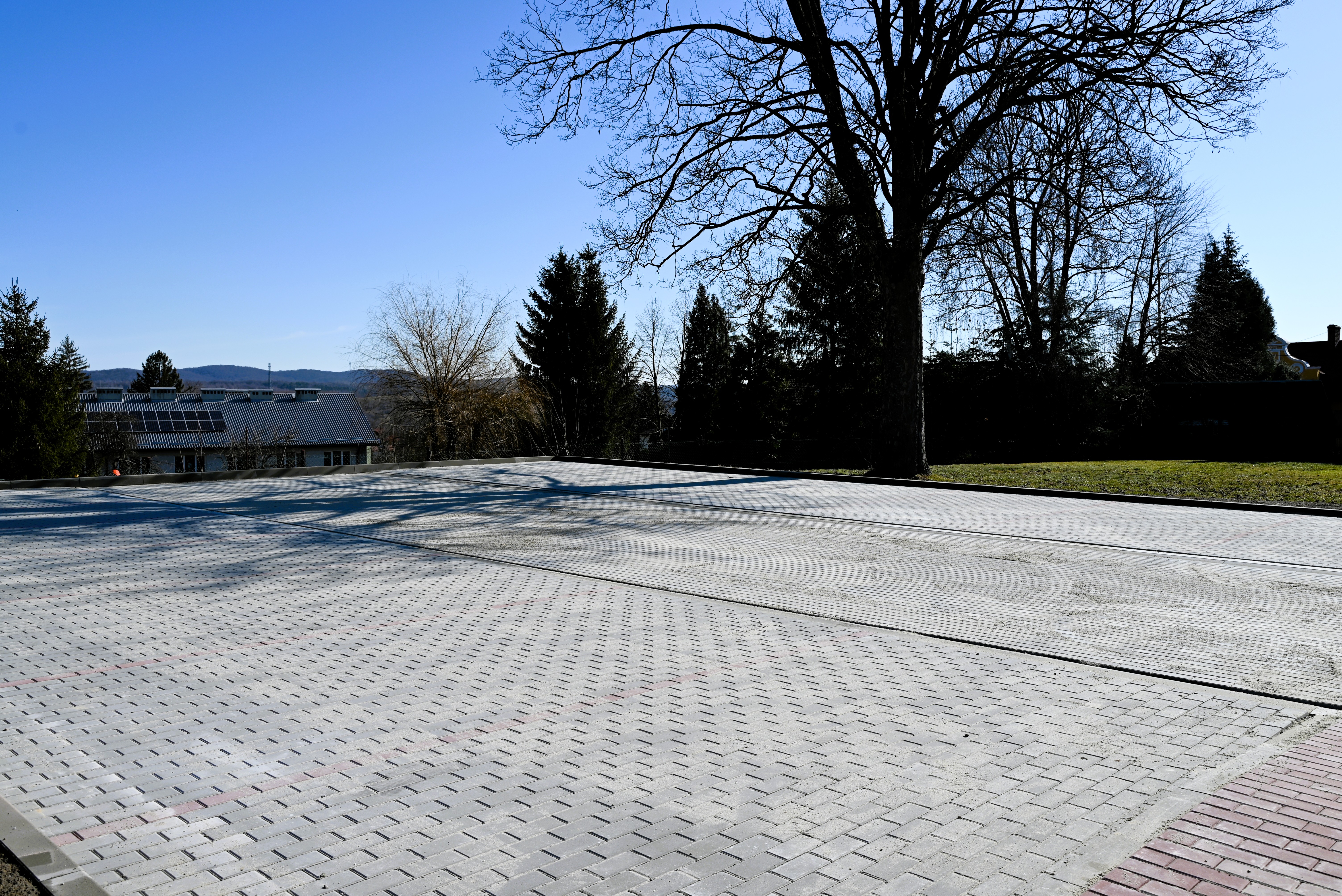 Zakres inwestycji obejmował wykonanie placu z kostki betonowej o grubości 8 cm i powierzchni około 300 m² wraz z obramowaniem z krawężników oraz niezbędną infrastrukturą techniczną.