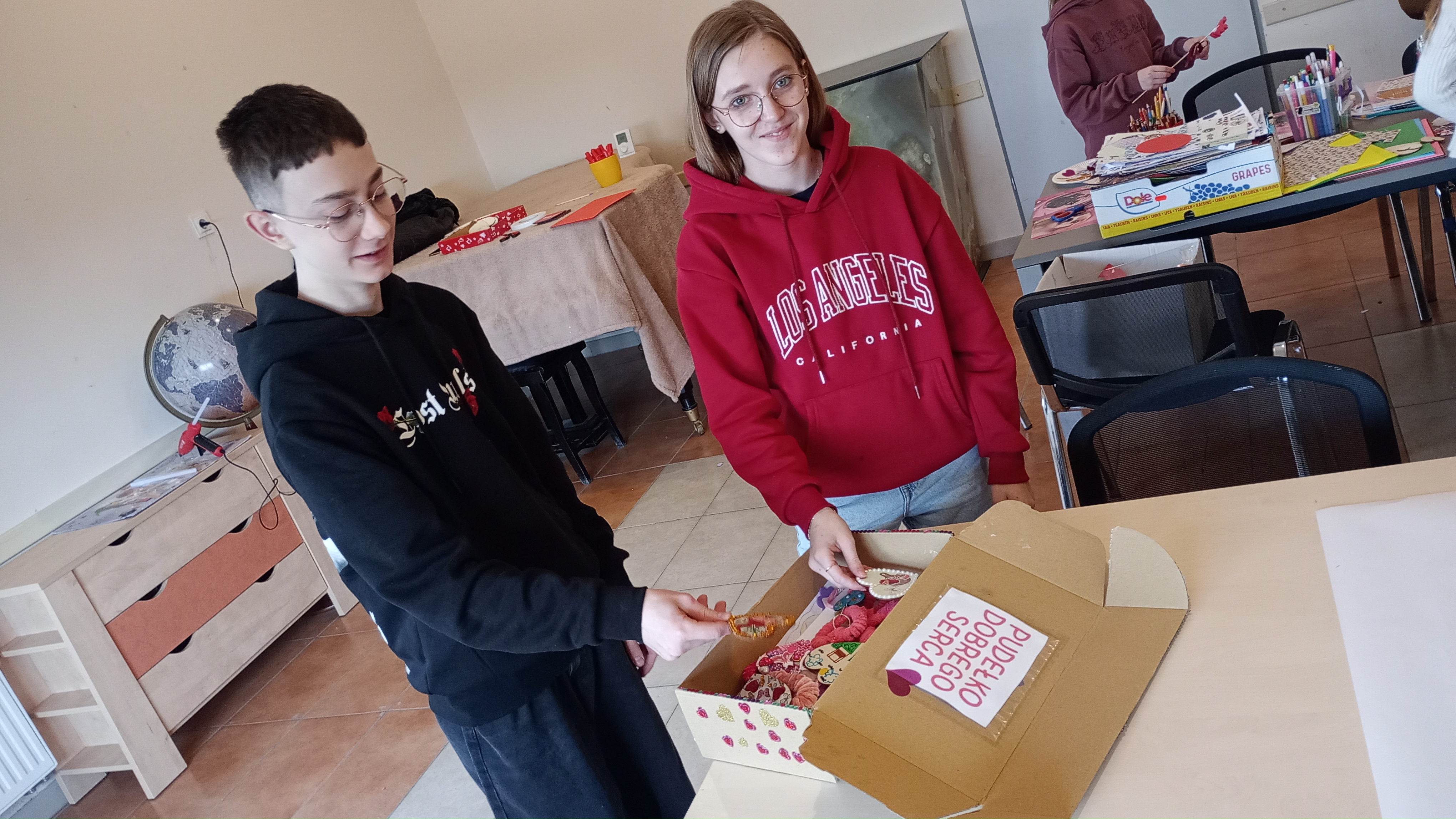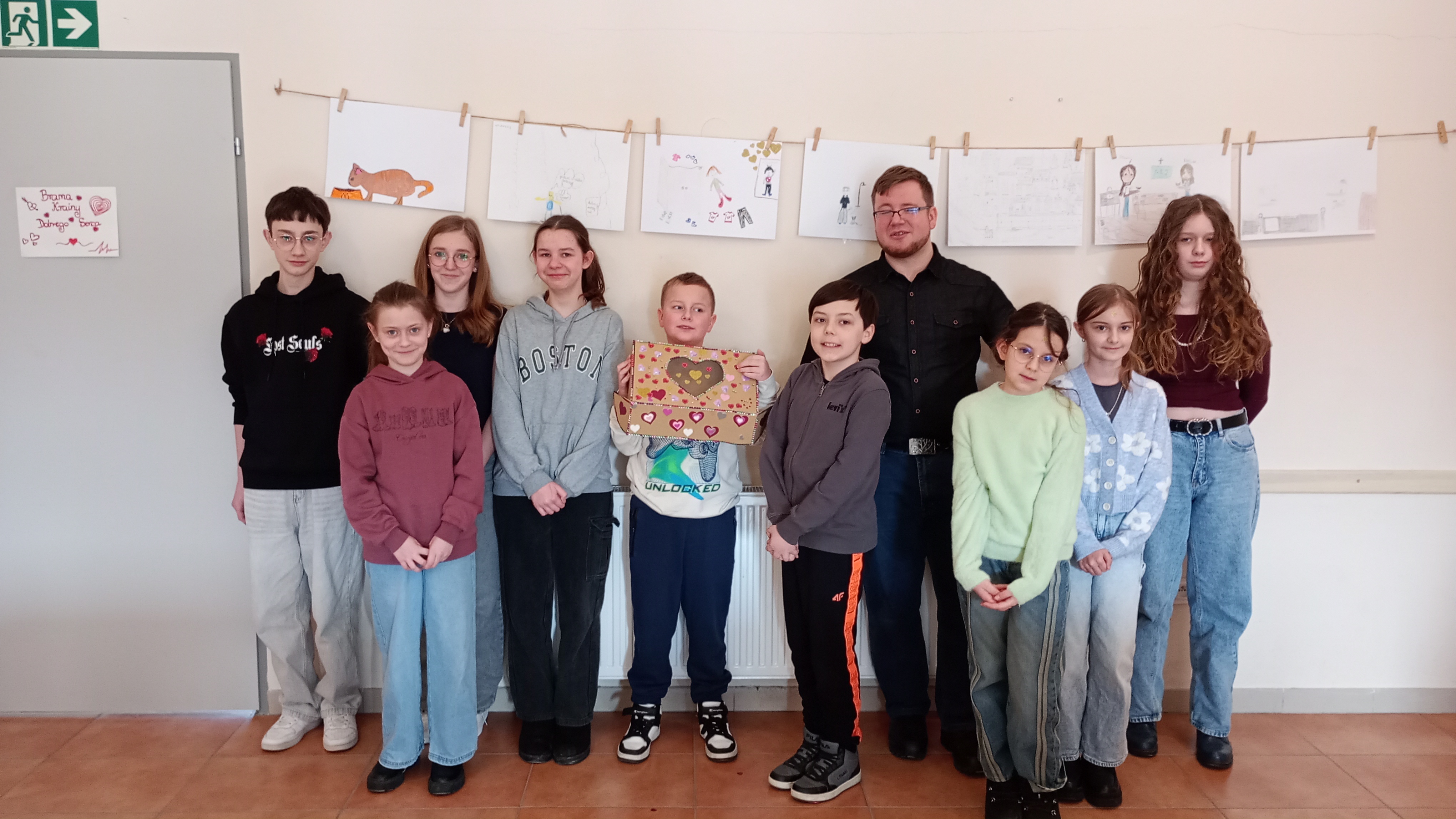 MISJĘ – DOBRE SERCE dzieci rozpoczęły od przejścia przez Bramę Krainy Dobrego Serca. Z P. Pawłem Gądkiem rozmawiały o dobru, rozszyfrowywały zdania ukryte w „hieroglifach”, odkrywając, jak wiele znaczeń może mieć to słowo. Ponadto poznawały lokalne inicjatywy dobroczynne z historii Brzozowa i okolic. Dowiedziały się także, jak nasza fundacja wspiera potrzebujących. Wspólnie stworzyły symboliczną Bramę do Krainy Dobrego Serca oraz prace plastyczne przedstawiające dobre uczynki. Powstało też „pudełko dobrego serca”, do którego trafiały wybrane prezenty dla podopiecznych Fundacji.