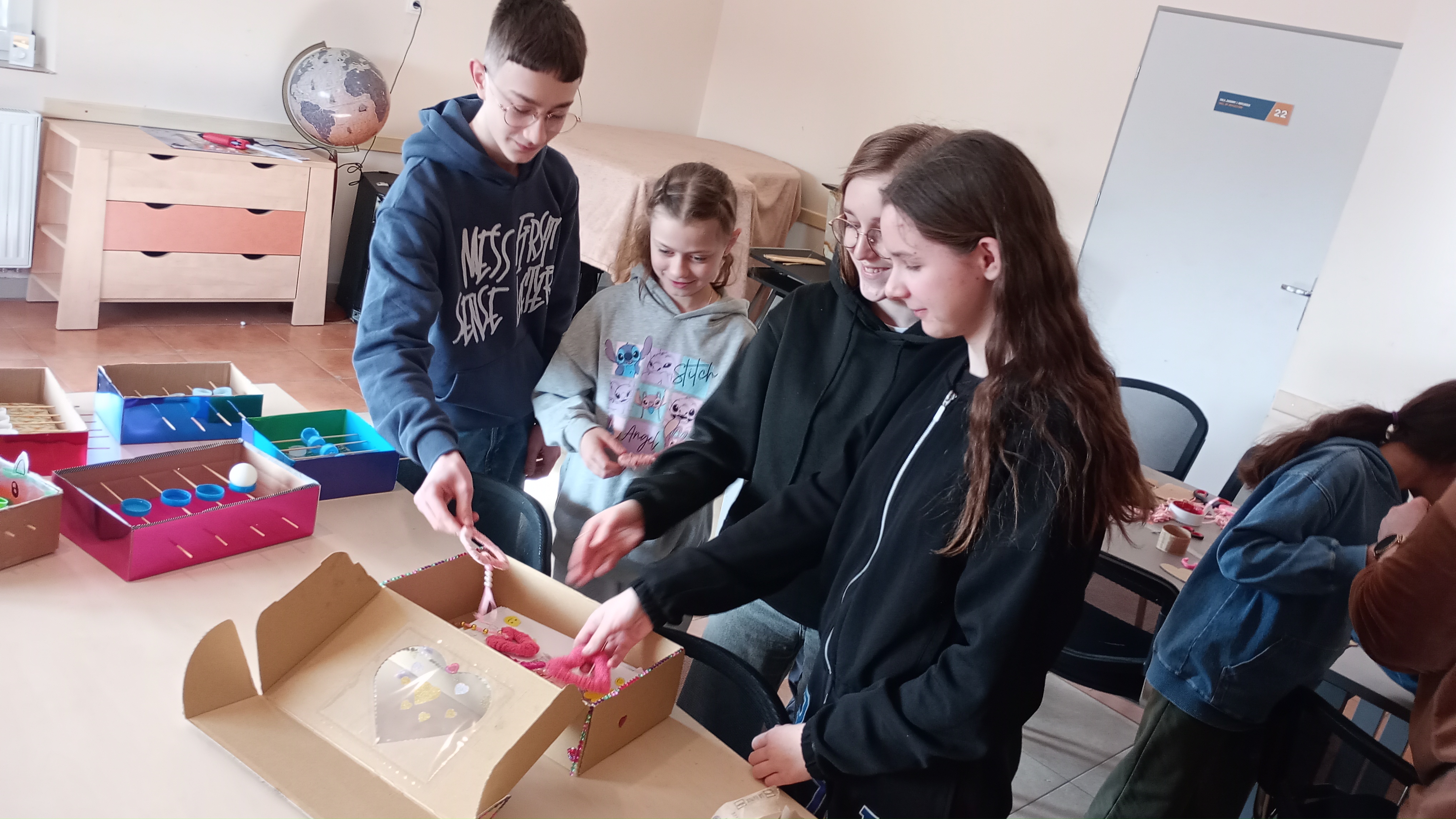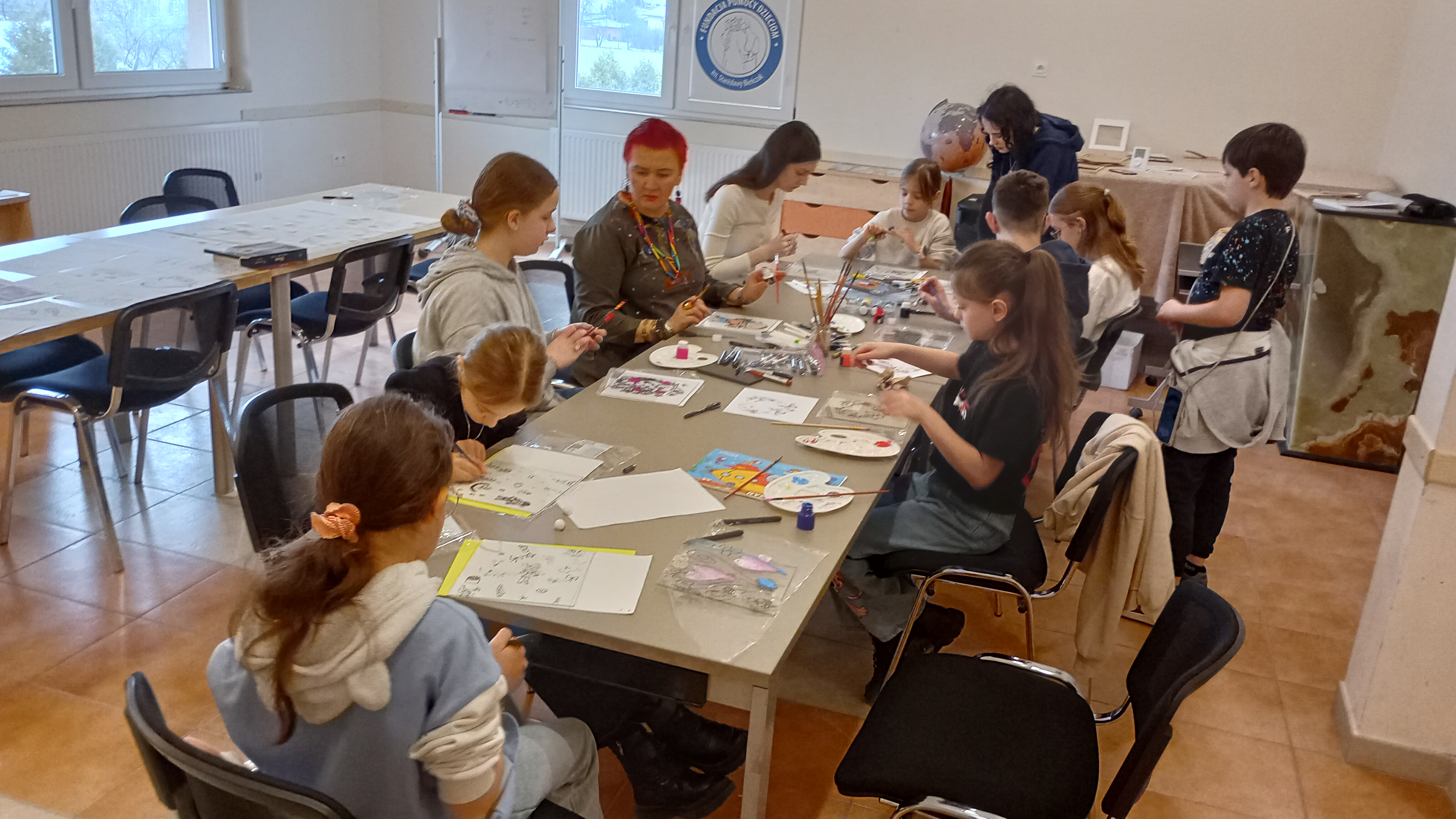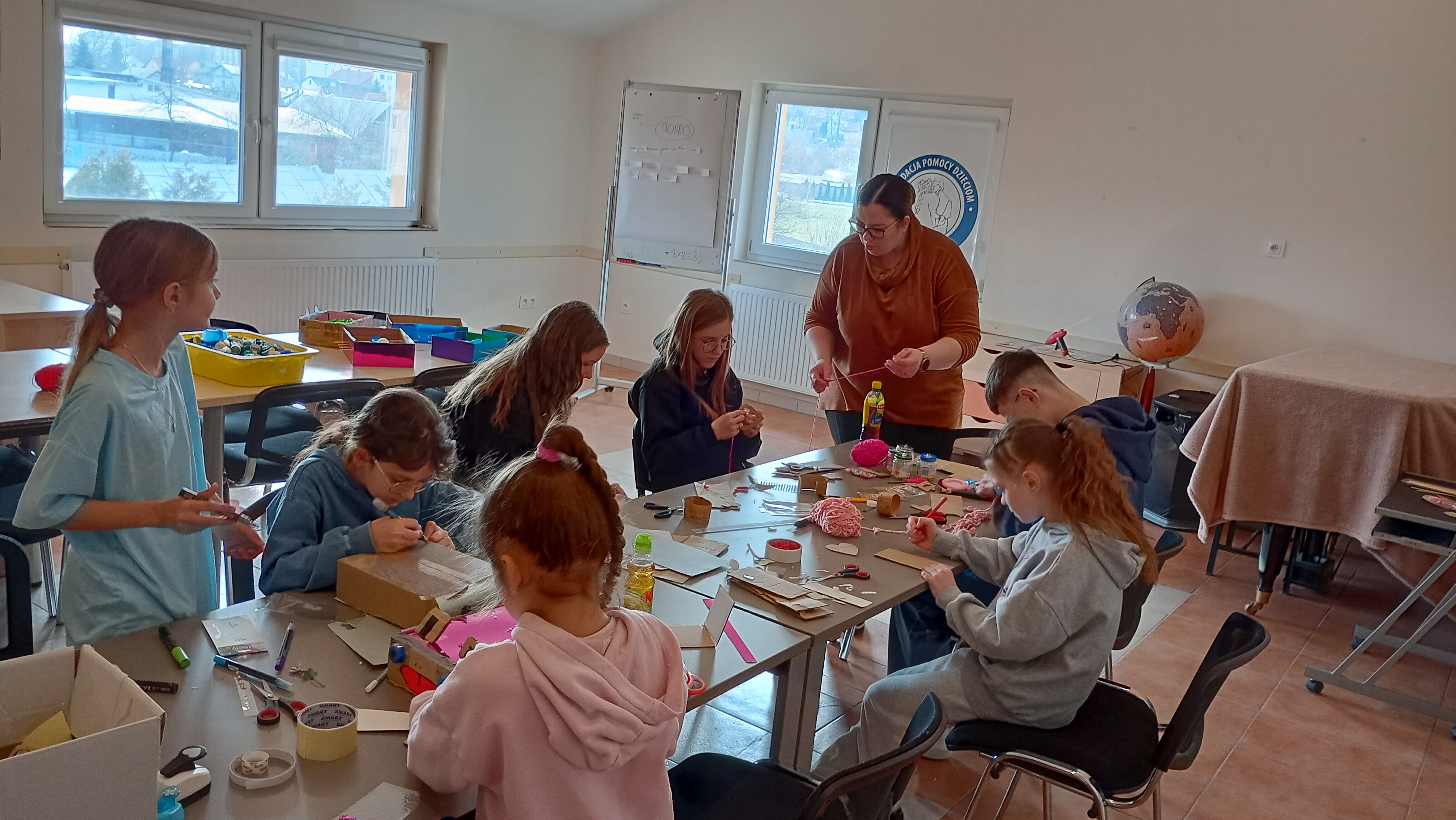 W Rzece Pomocy dzieci poznawały różne „fale dobra” – od wyprawek szkolnych i paczek świątecznych, po refundacje leczenia chorych i niepełnosprawnych oraz stypendia. Tworzyły drewniane breloki, magnesy i serca na piku, które trafiały do Pudełka Dobrego Serca. W drugiej części warsztatów, pod okiem P. Ani Brodzickiej- Woźniak – żywego przykładu bezinteresownej pomocy – powstały łapacze snów, ramki na zdjęcia oraz wyjątkowy plakat z podziękowaniem.