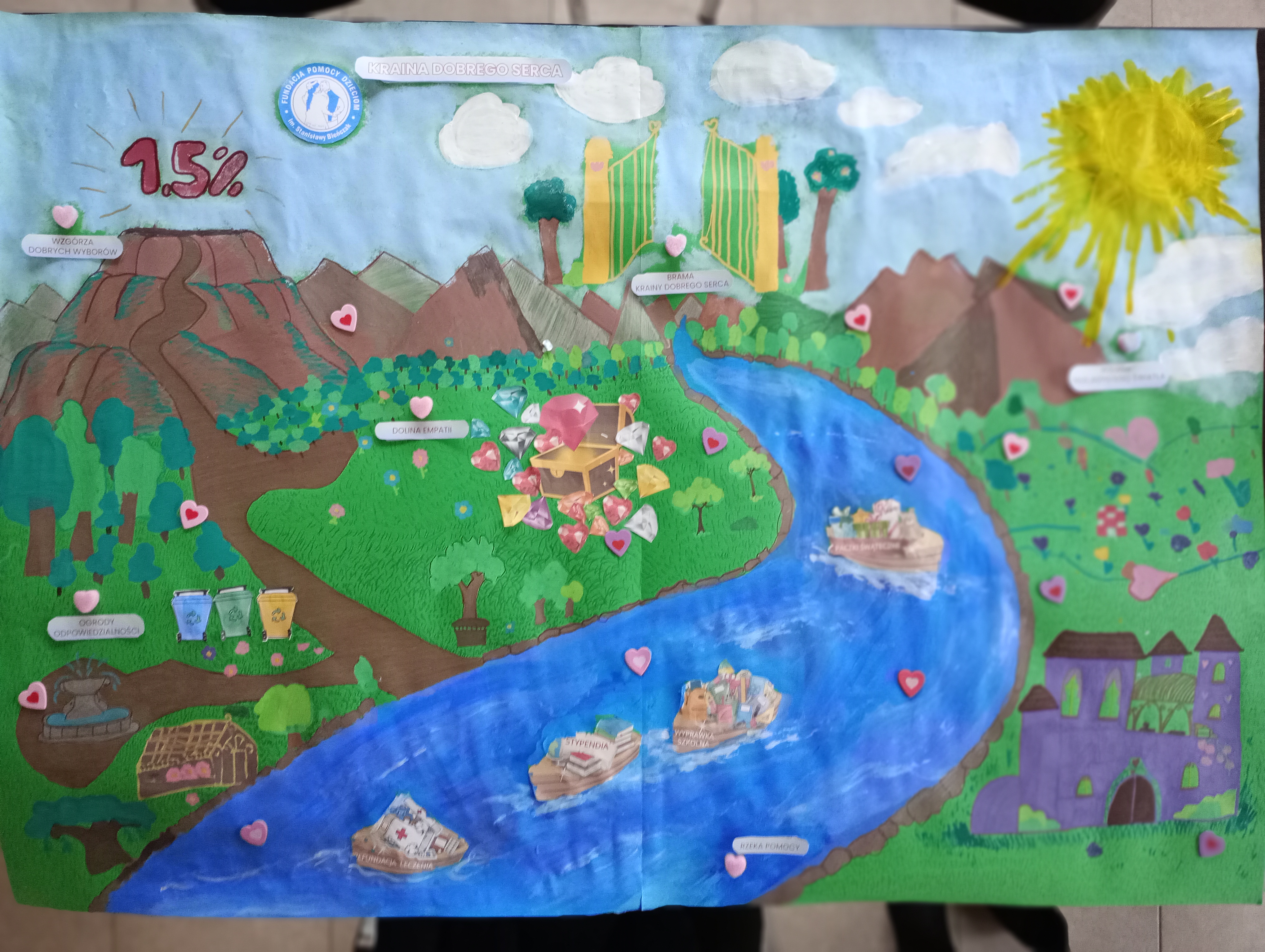 W Dolinie Empatii z P. Dorotą Prokopską – Oleniacz dzieci odkrywały znaczenie wartości takich jak szacunek, życzliwość i pomoc. Tworzyły artystyczne prace ze swoimi imionami, ćwiczyły empatię, „wchodząc w czyjeś buty”, oraz przygotowały symboliczne dary dla podopiecznych fundacji. Na zakończenie wspólnie uzupełniły mapę Krainy Dobrego Serca o skarby dobra – wsparcie, uśmiech i życzliwość.