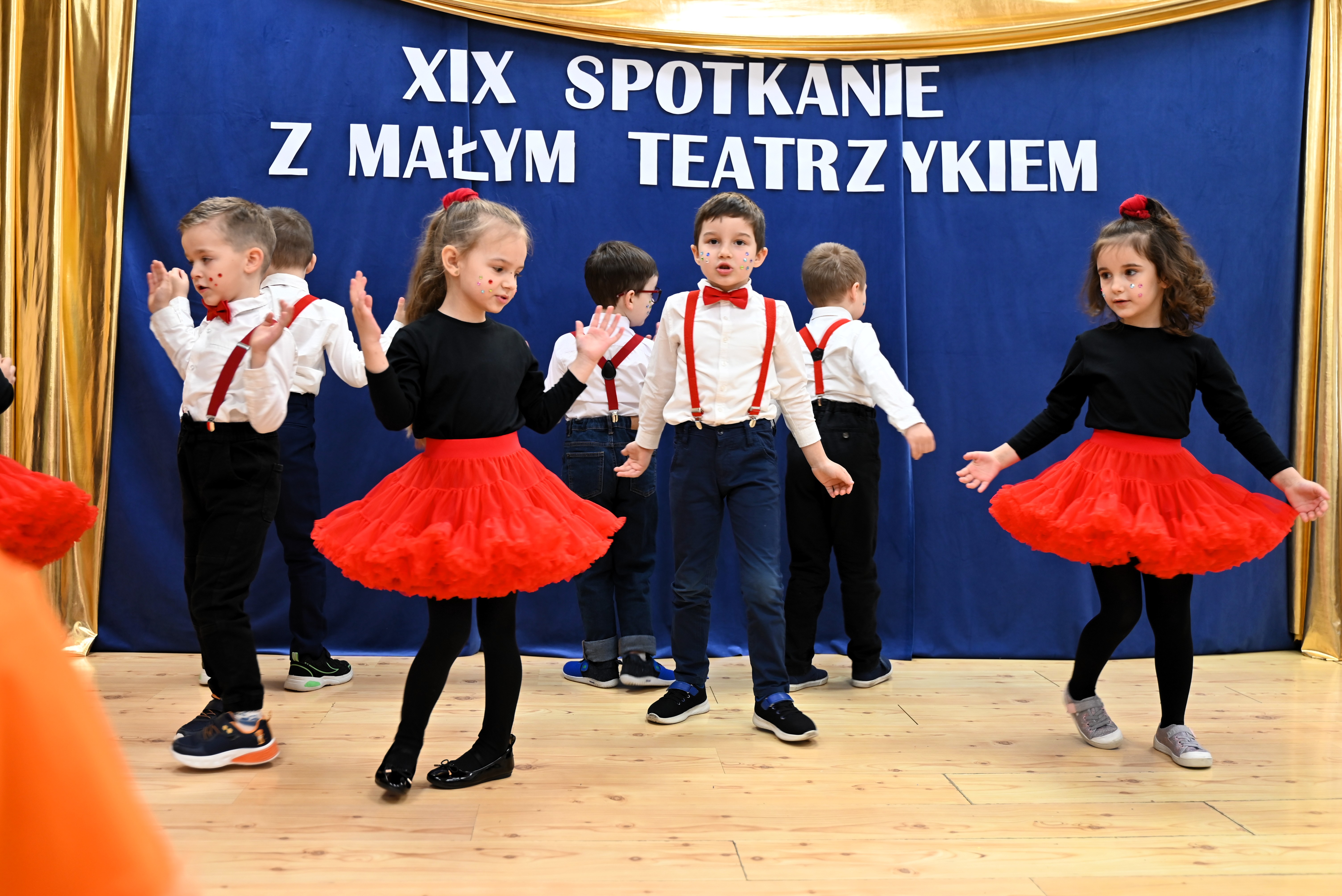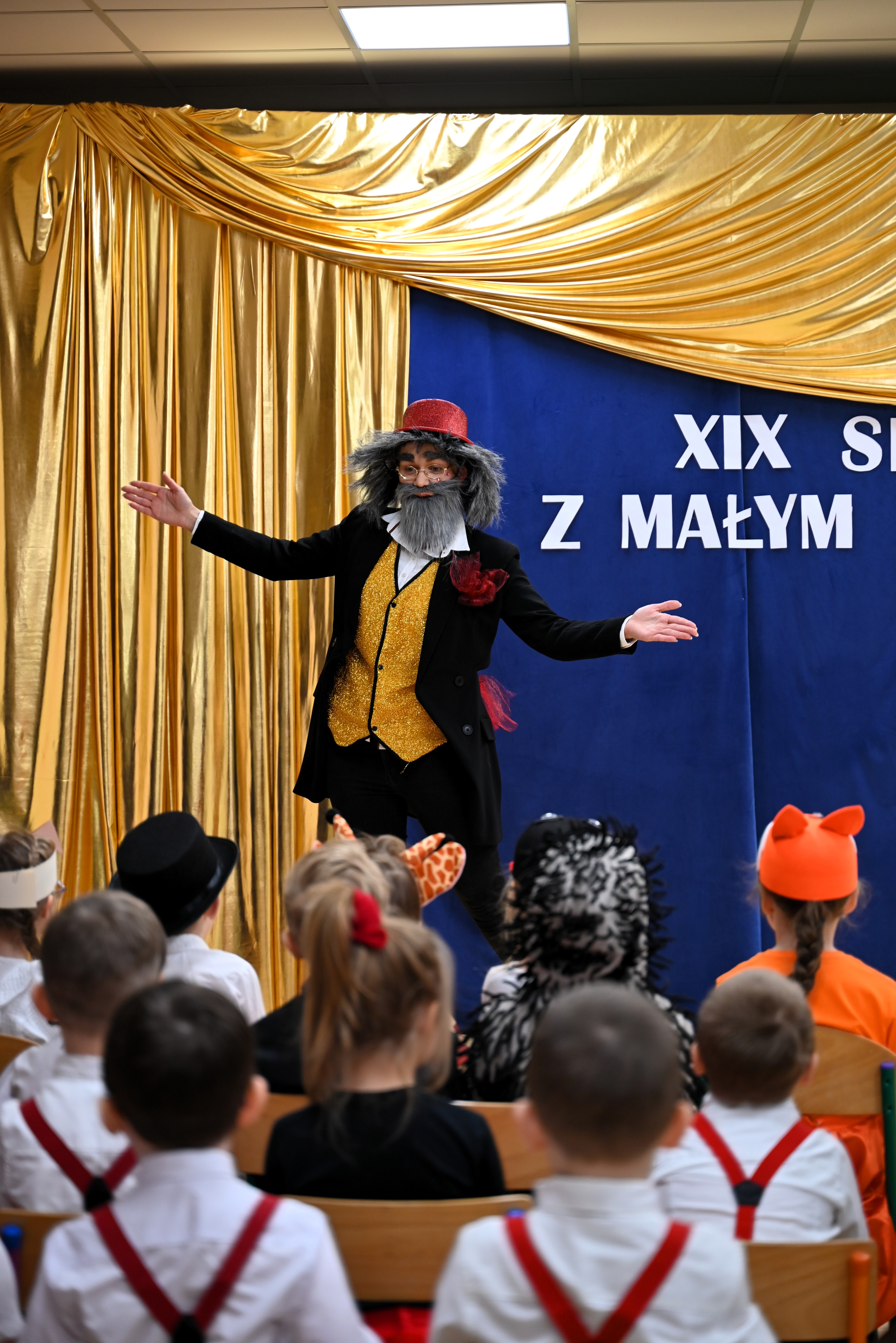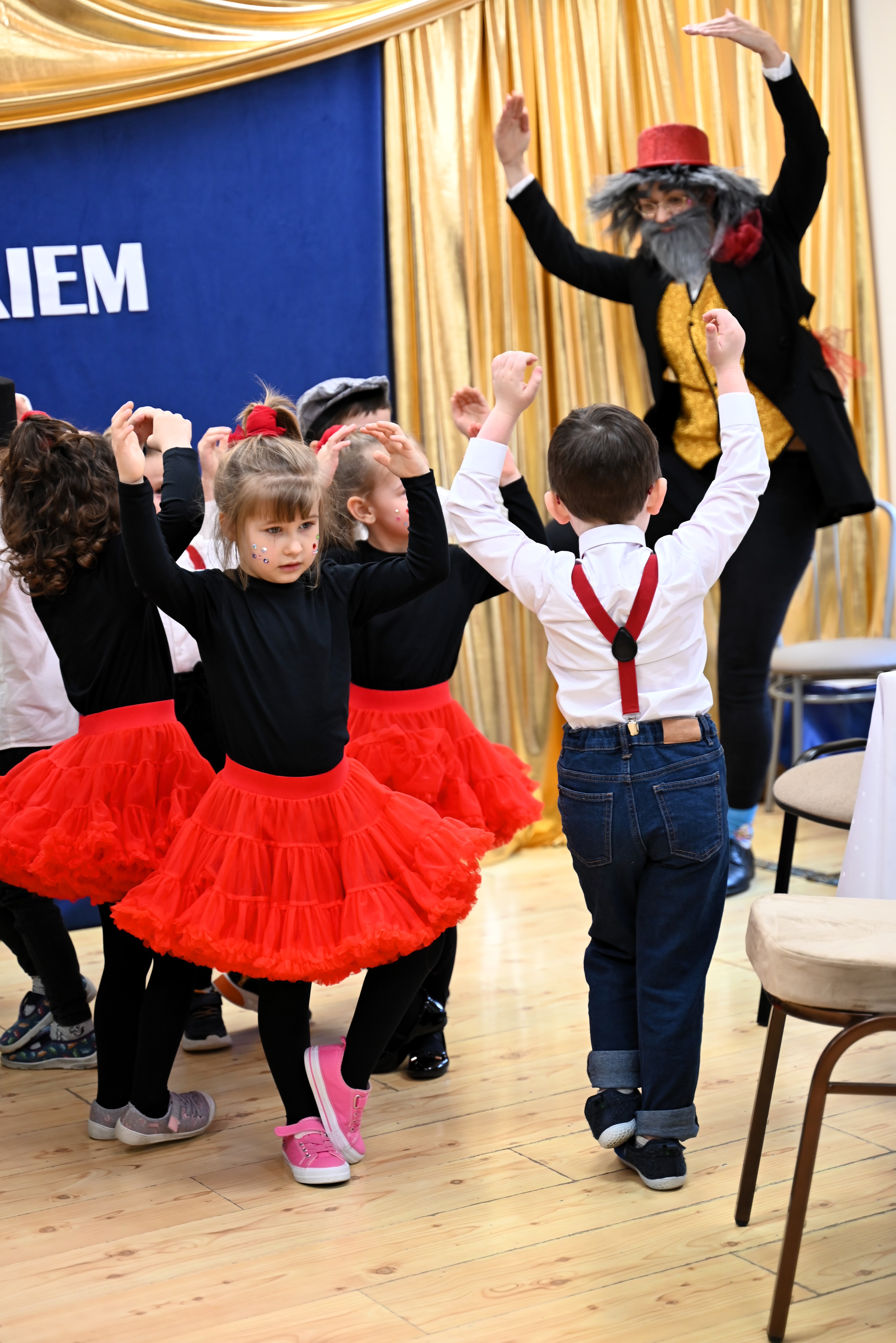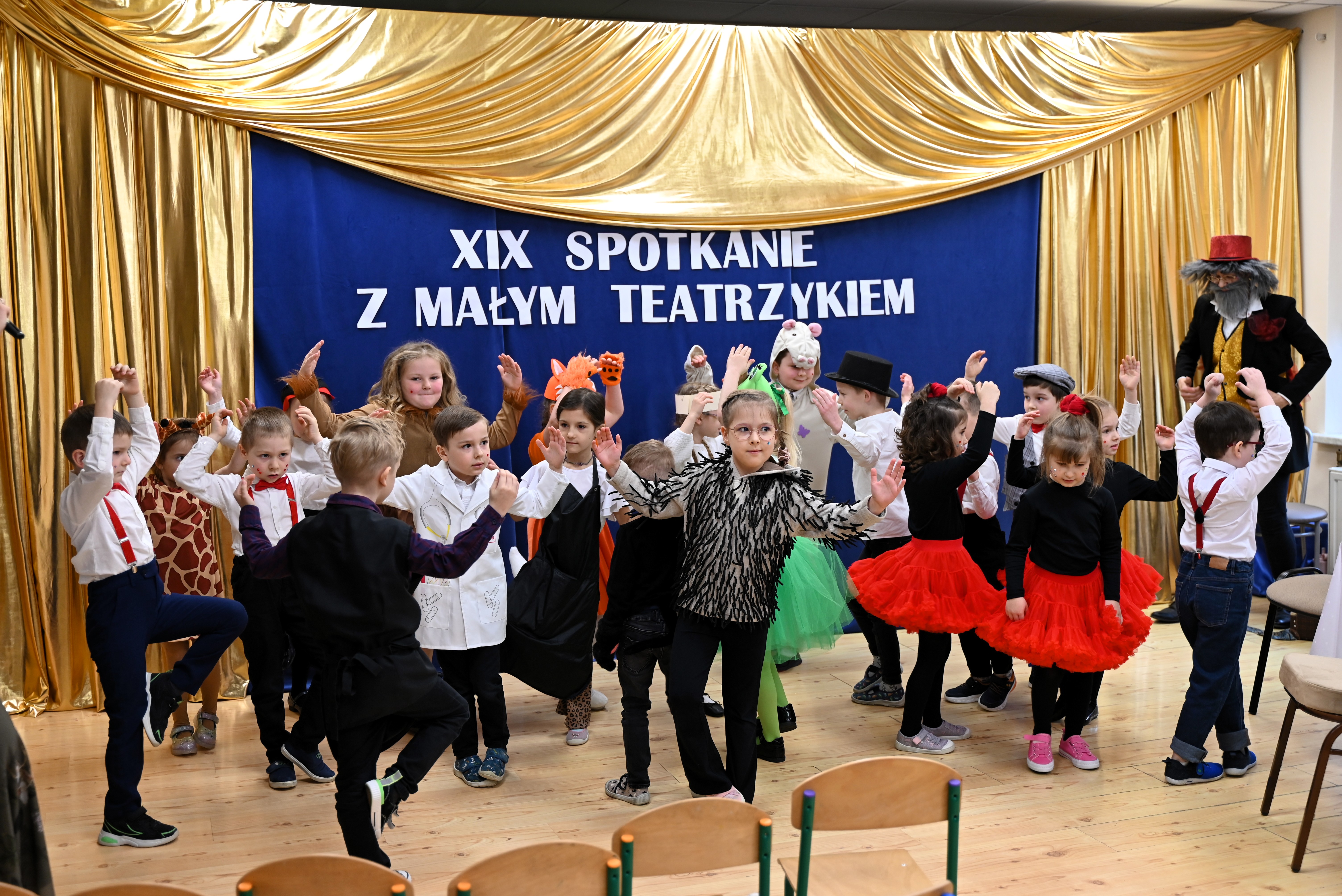 Najmłodsi uczestnicy z ogromnym zaangażowaniem zaprezentowali swoje umiejętności, wcielając się w różnorodne postacie. Barwne, dopracowane stroje, pomysłowe scenografie oraz pięknie odegrane scenki sprawiły, że widzowie mogli choć na chwilę przenieść się do świata dziecięcej wyobraźni – pełnego magii, humoru i wzruszeń.