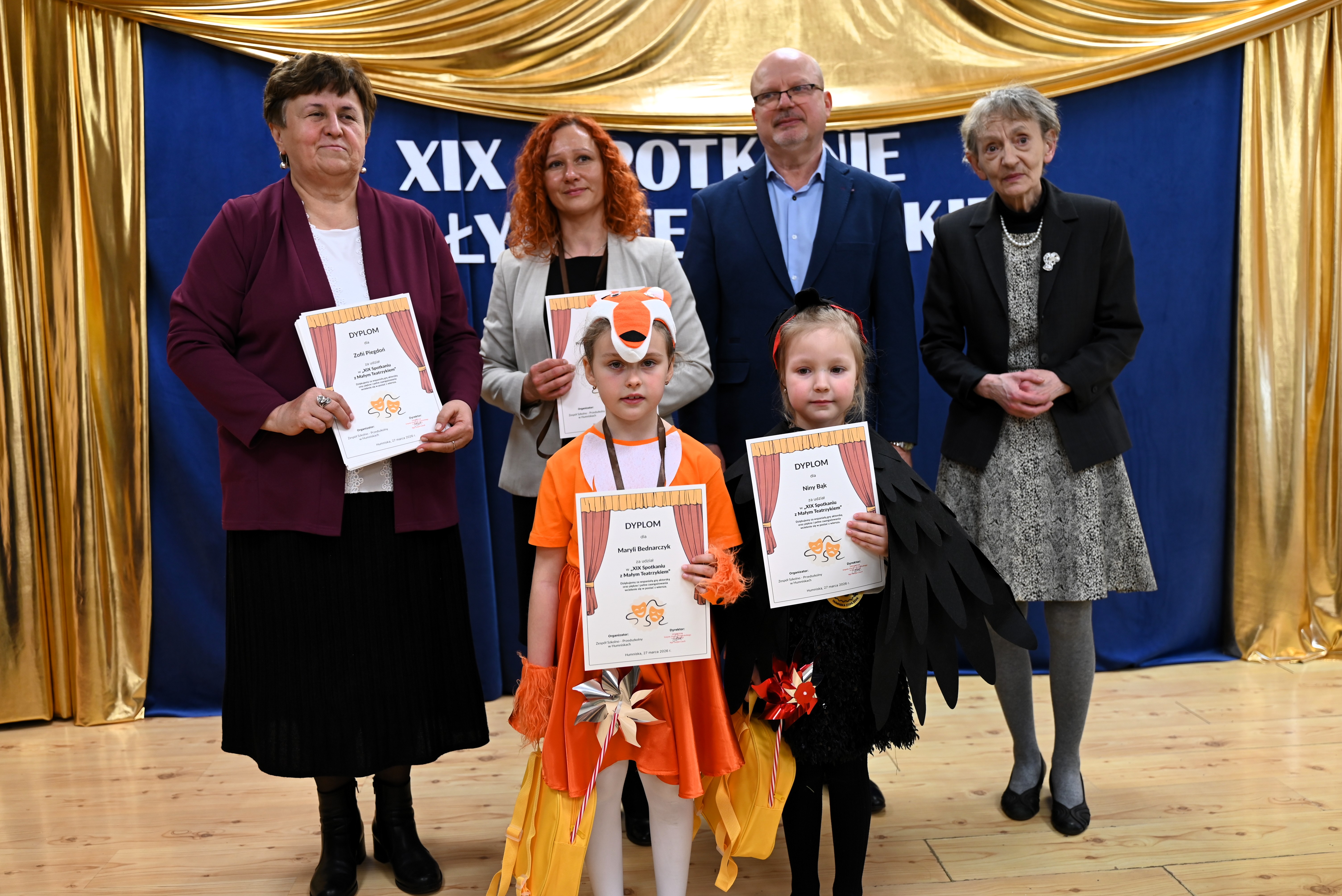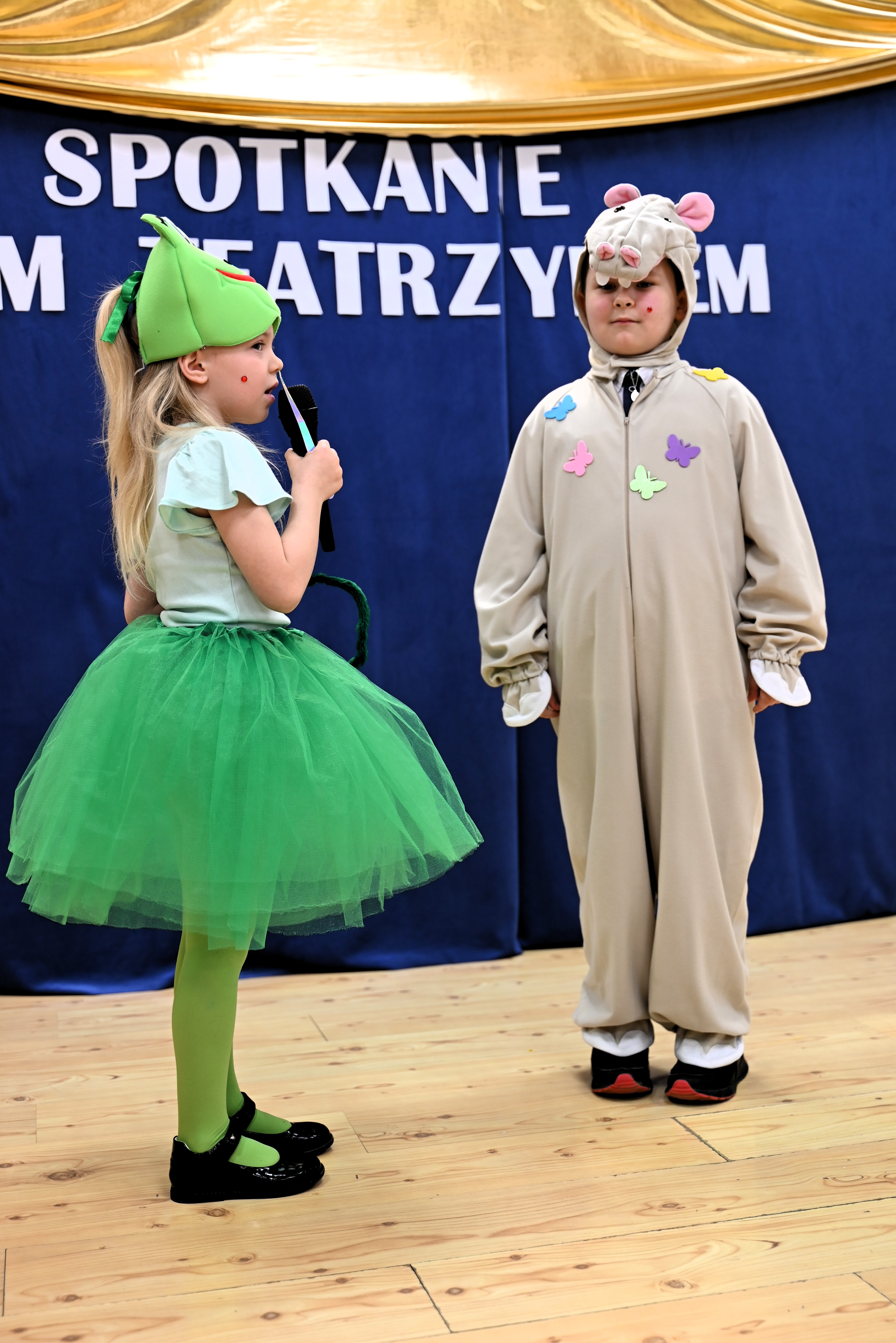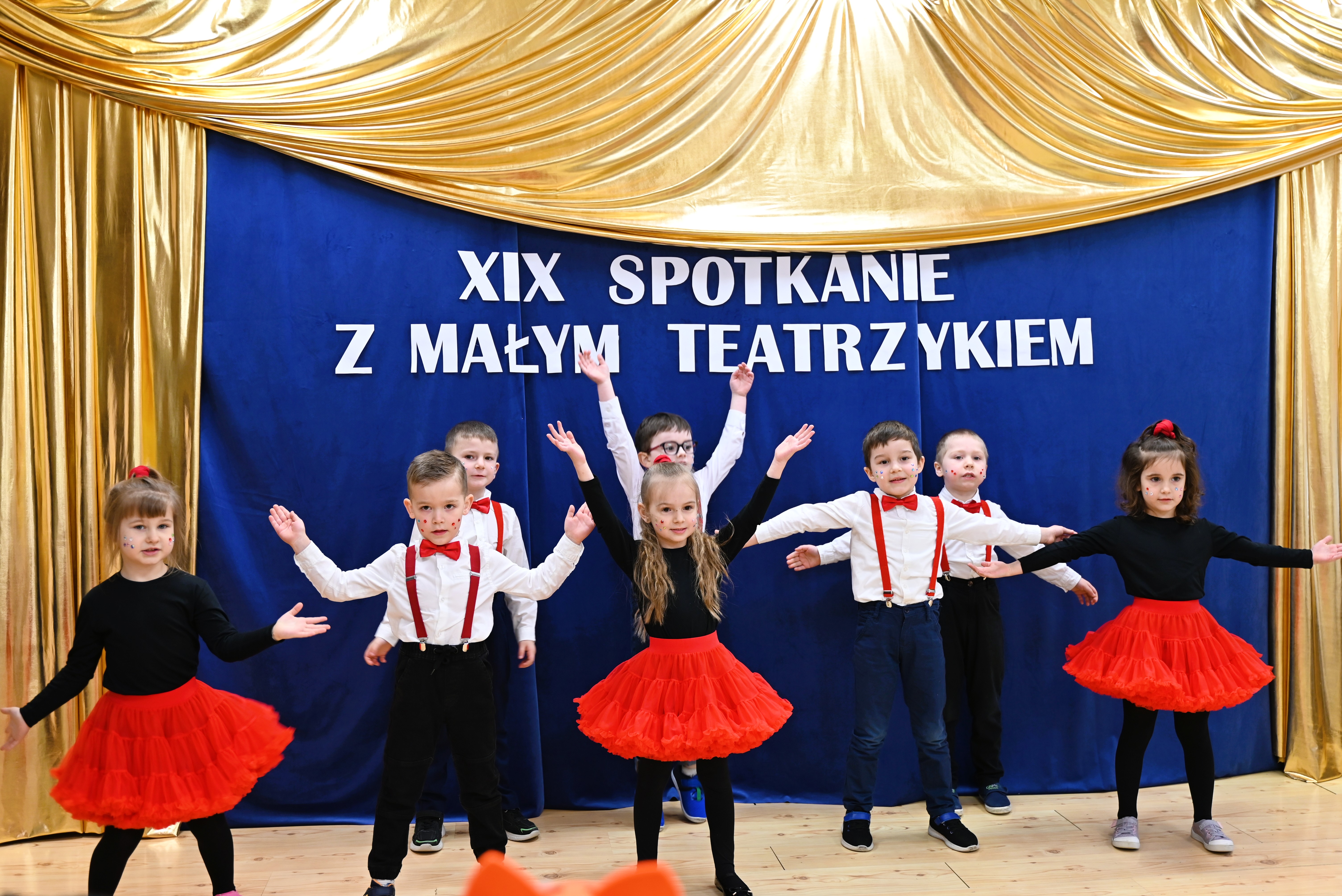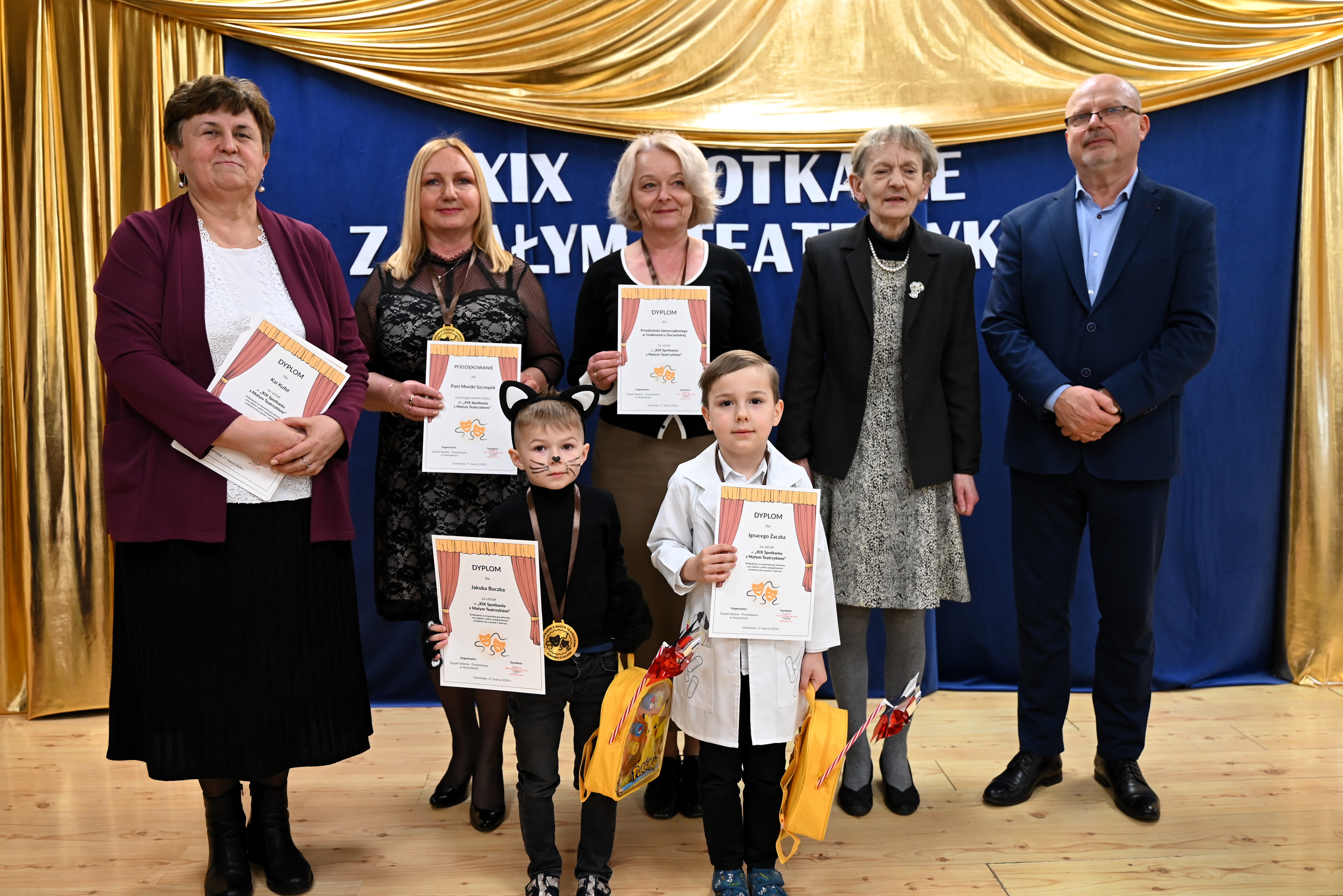 Najmłodsi uczestnicy z ogromnym zaangażowaniem zaprezentowali swoje umiejętności, wcielając się w różnorodne postacie. Barwne, dopracowane stroje, pomysłowe scenografie oraz pięknie odegrane scenki sprawiły, że widzowie mogli choć na chwilę przenieść się do świata dziecięcej wyobraźni – pełnego magii, humoru i wzruszeń.