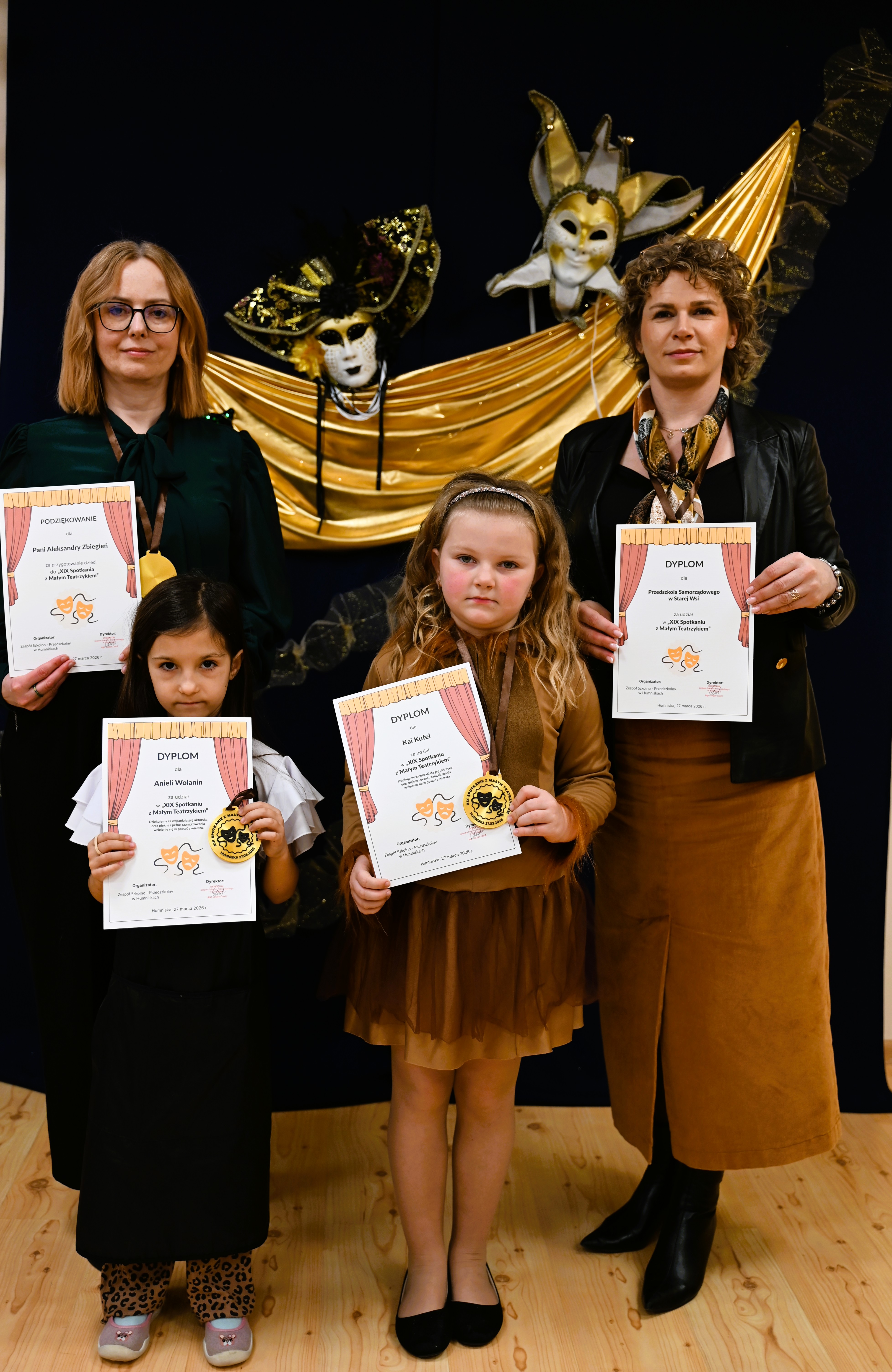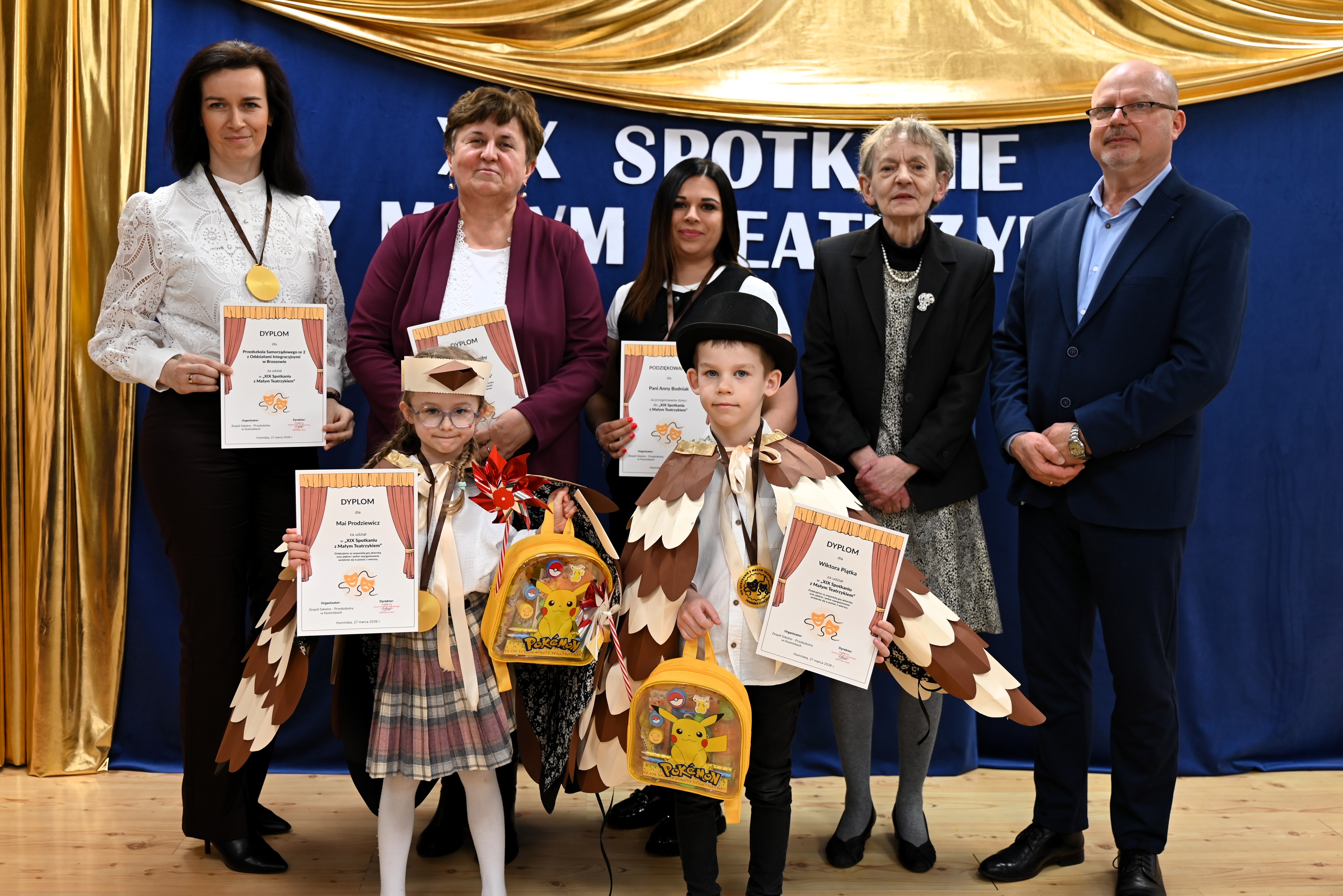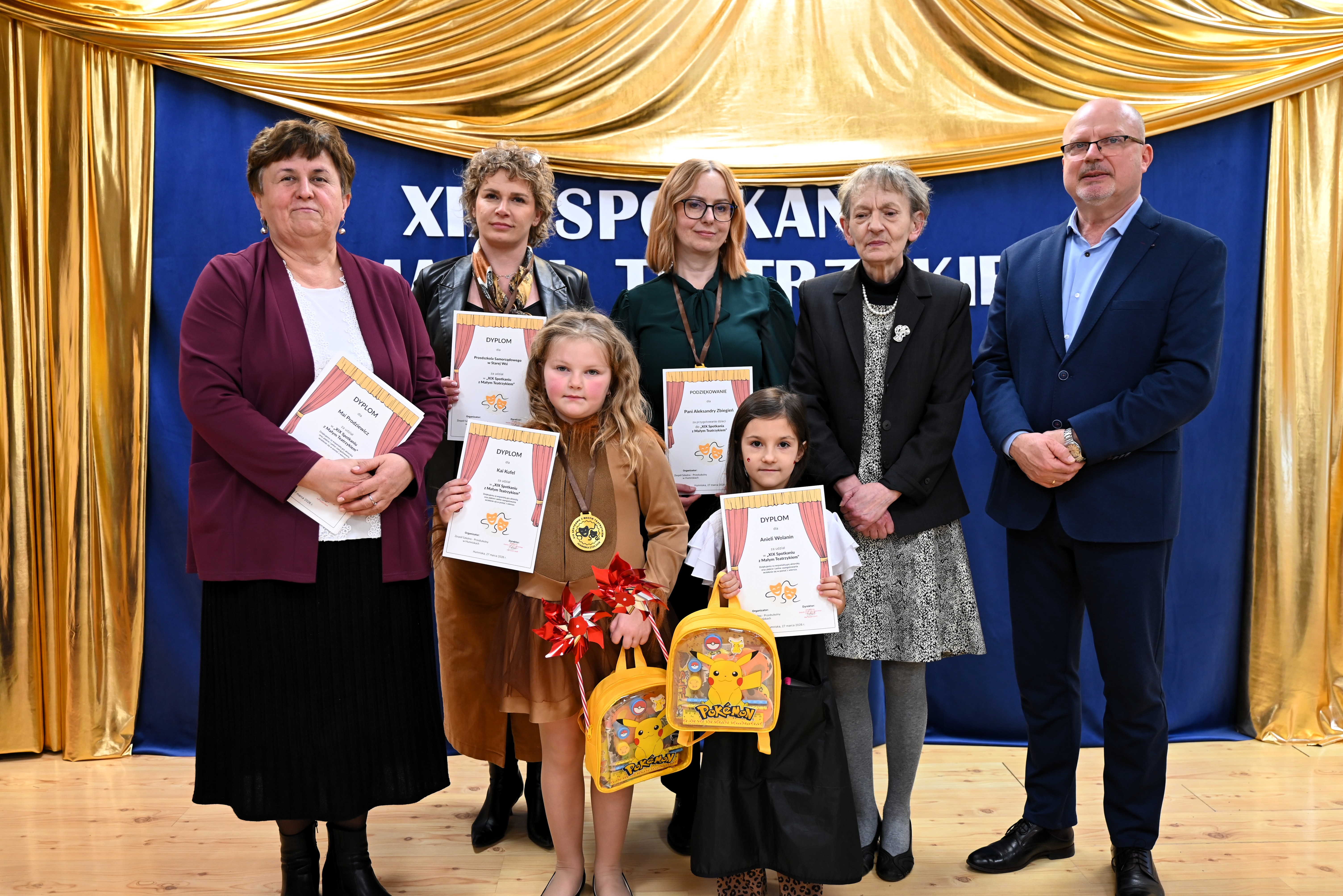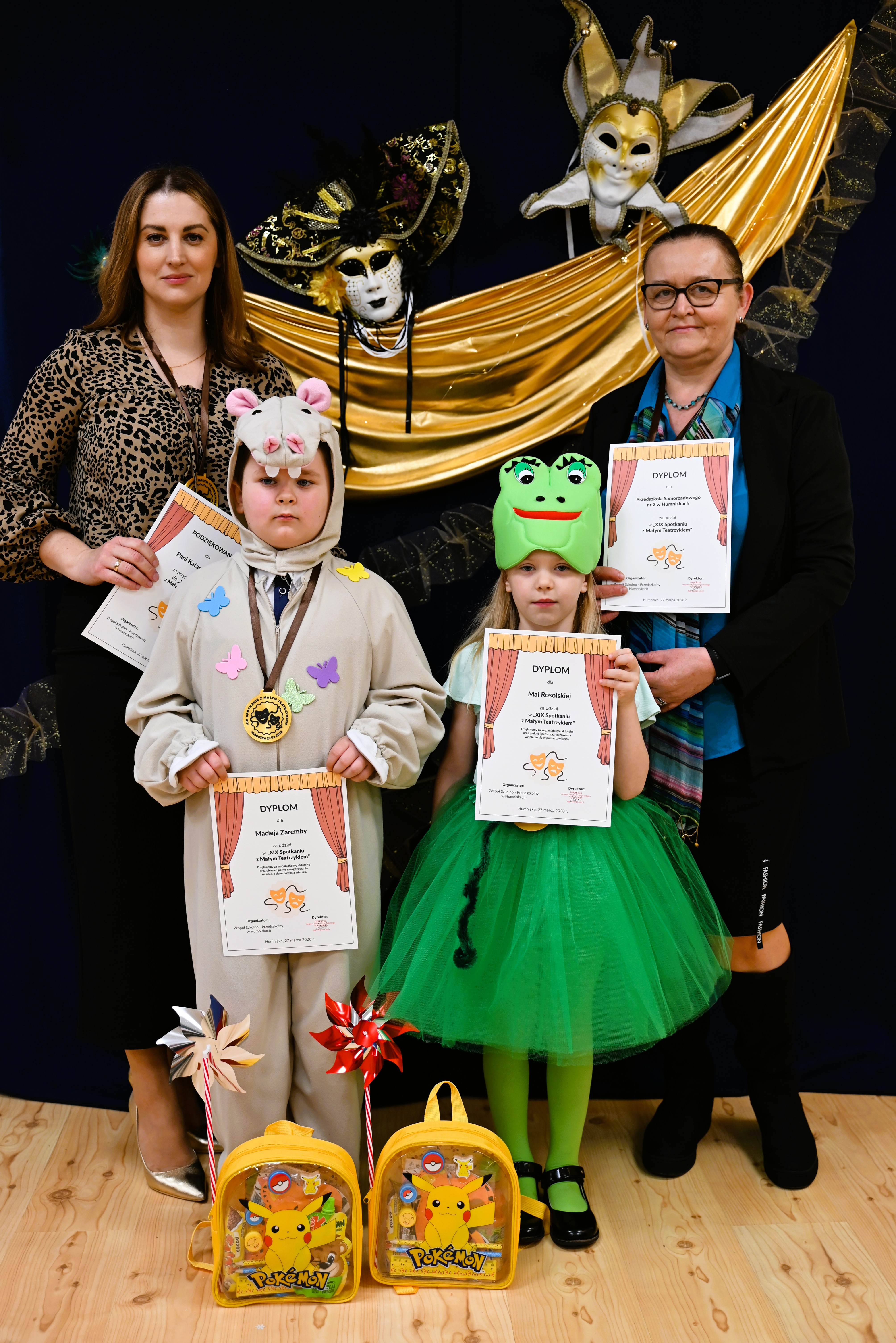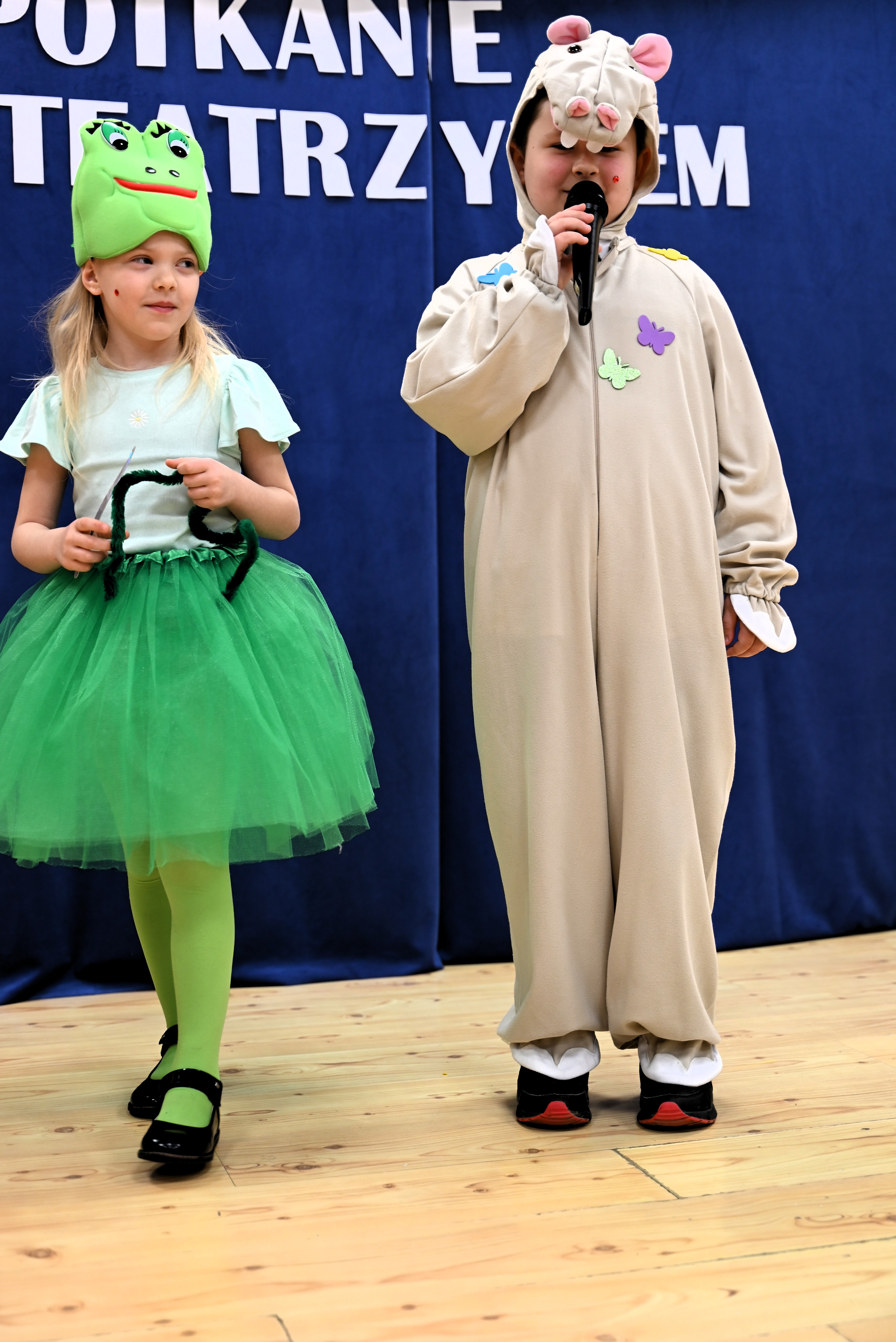 Najmłodsi uczestnicy z ogromnym zaangażowaniem zaprezentowali swoje umiejętności, wcielając się w różnorodne postacie. Barwne, dopracowane stroje, pomysłowe scenografie oraz pięknie odegrane scenki sprawiły, że widzowie mogli choć na chwilę przenieść się do świata dziecięcej wyobraźni – pełnego magii, humoru i wzruszeń.