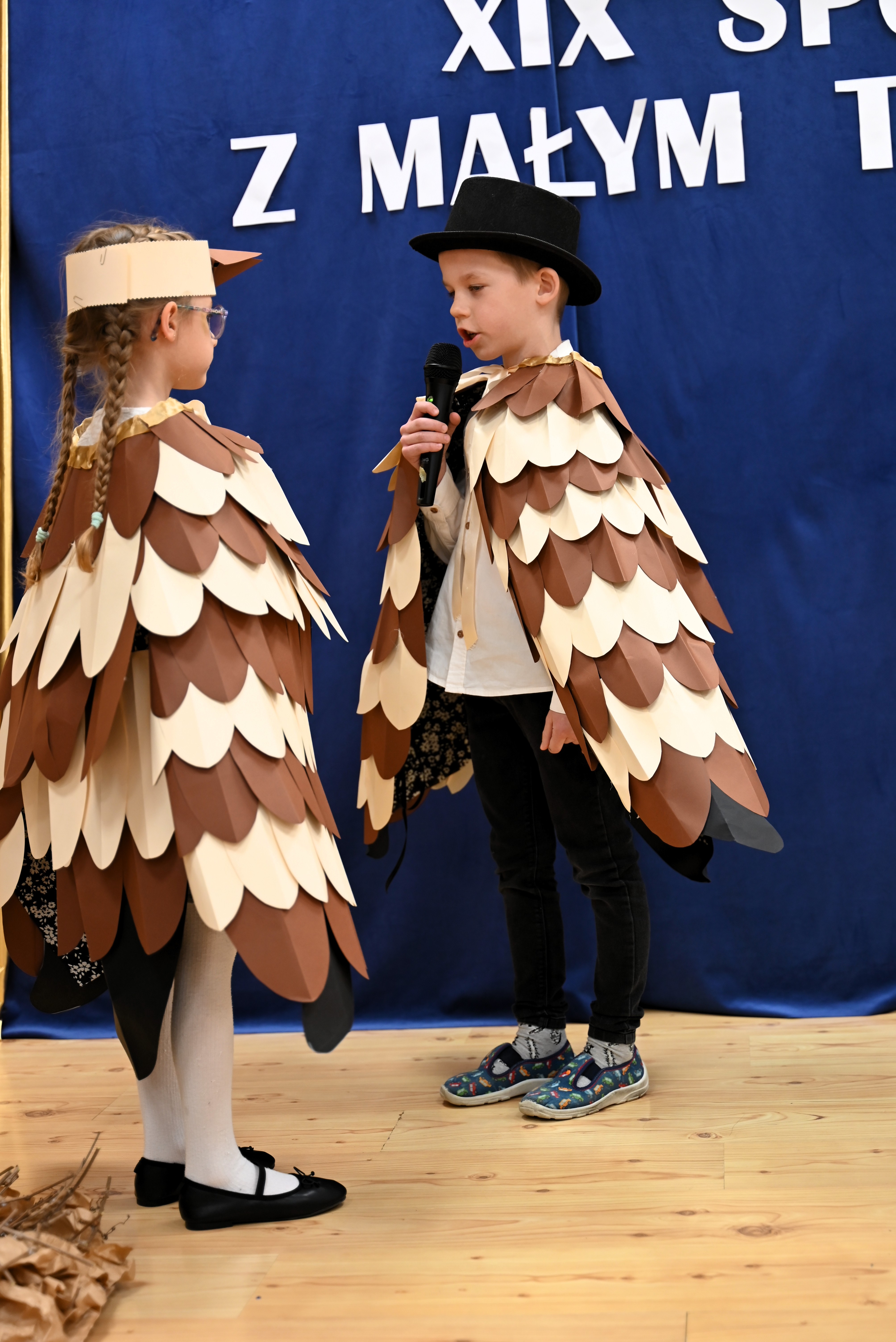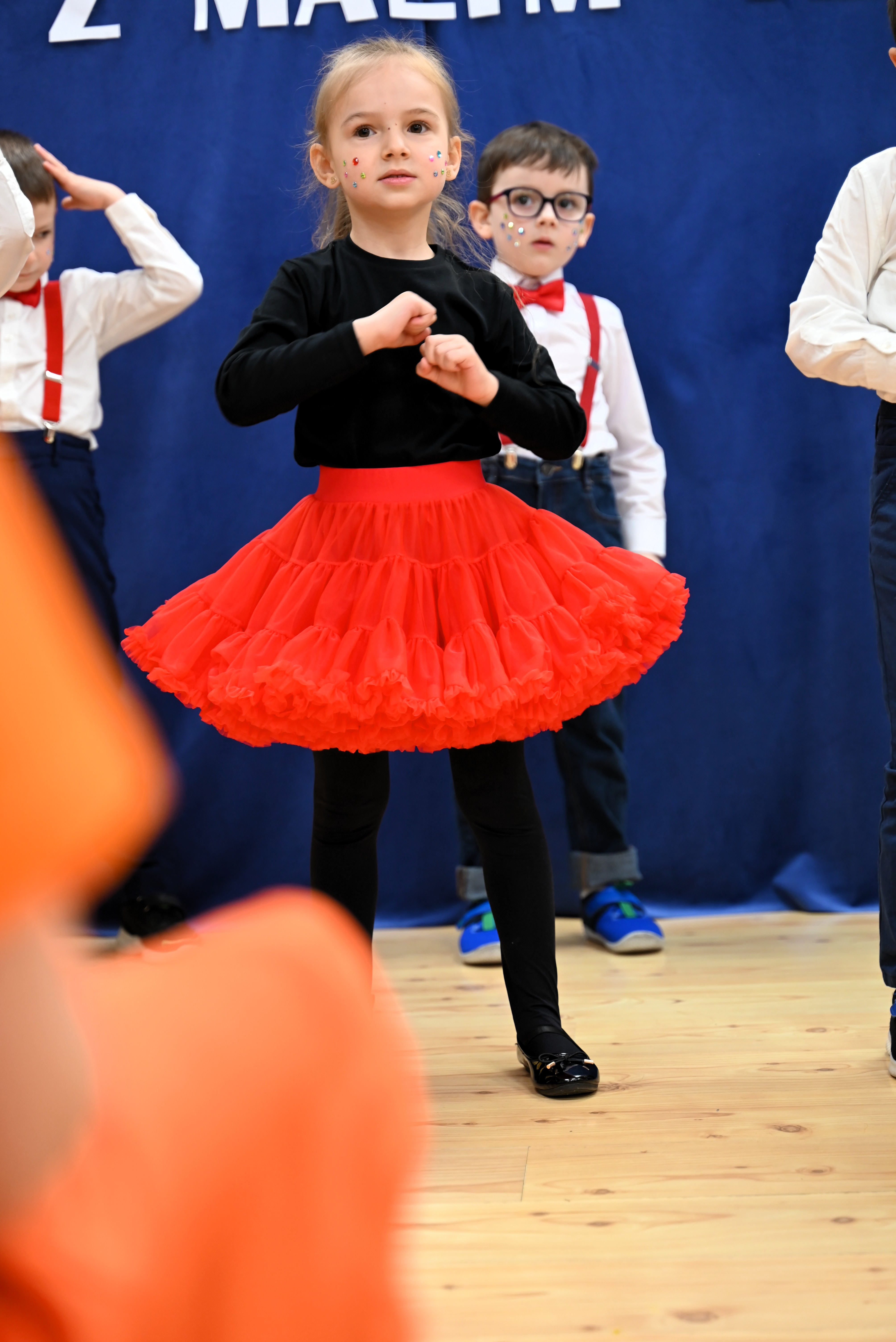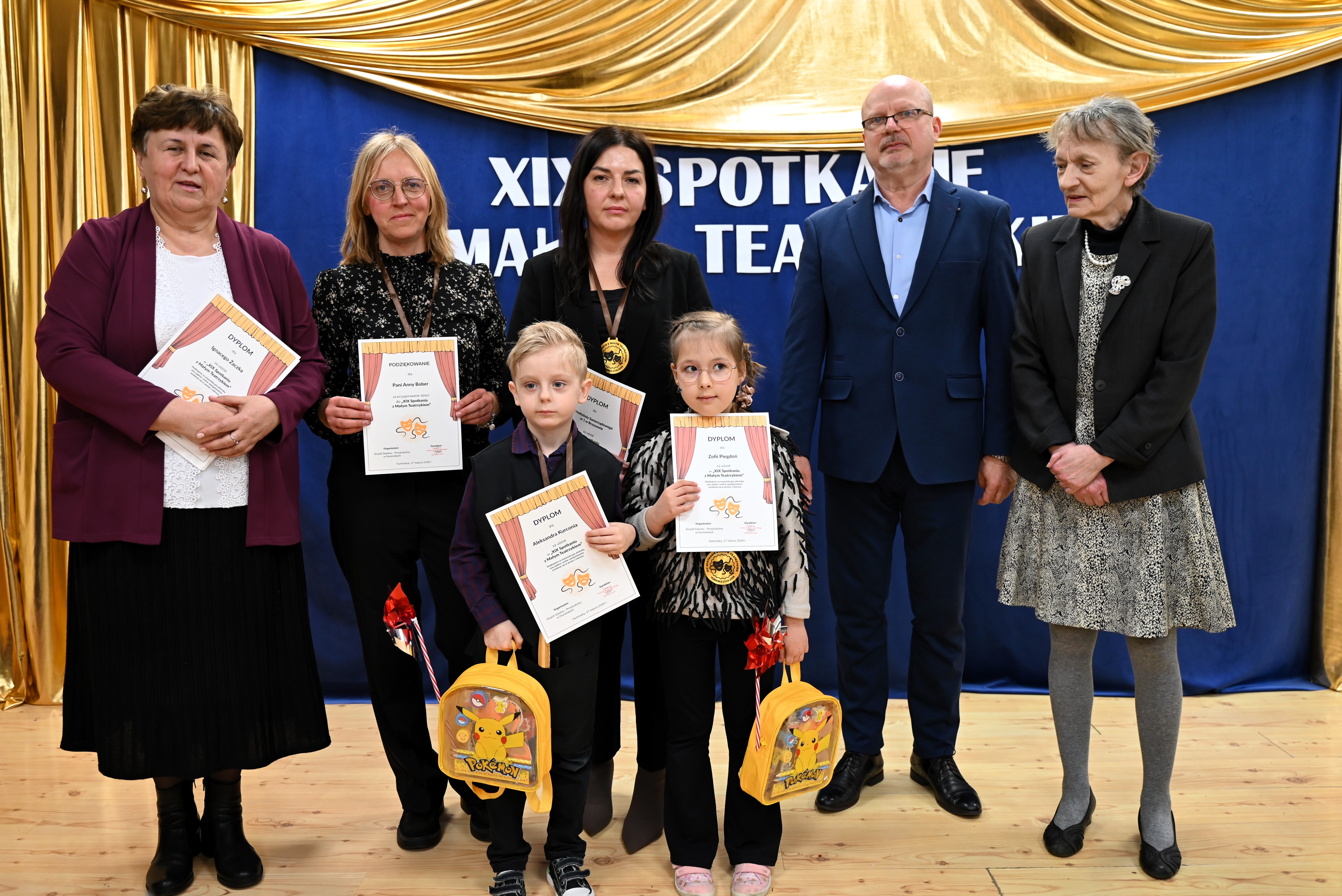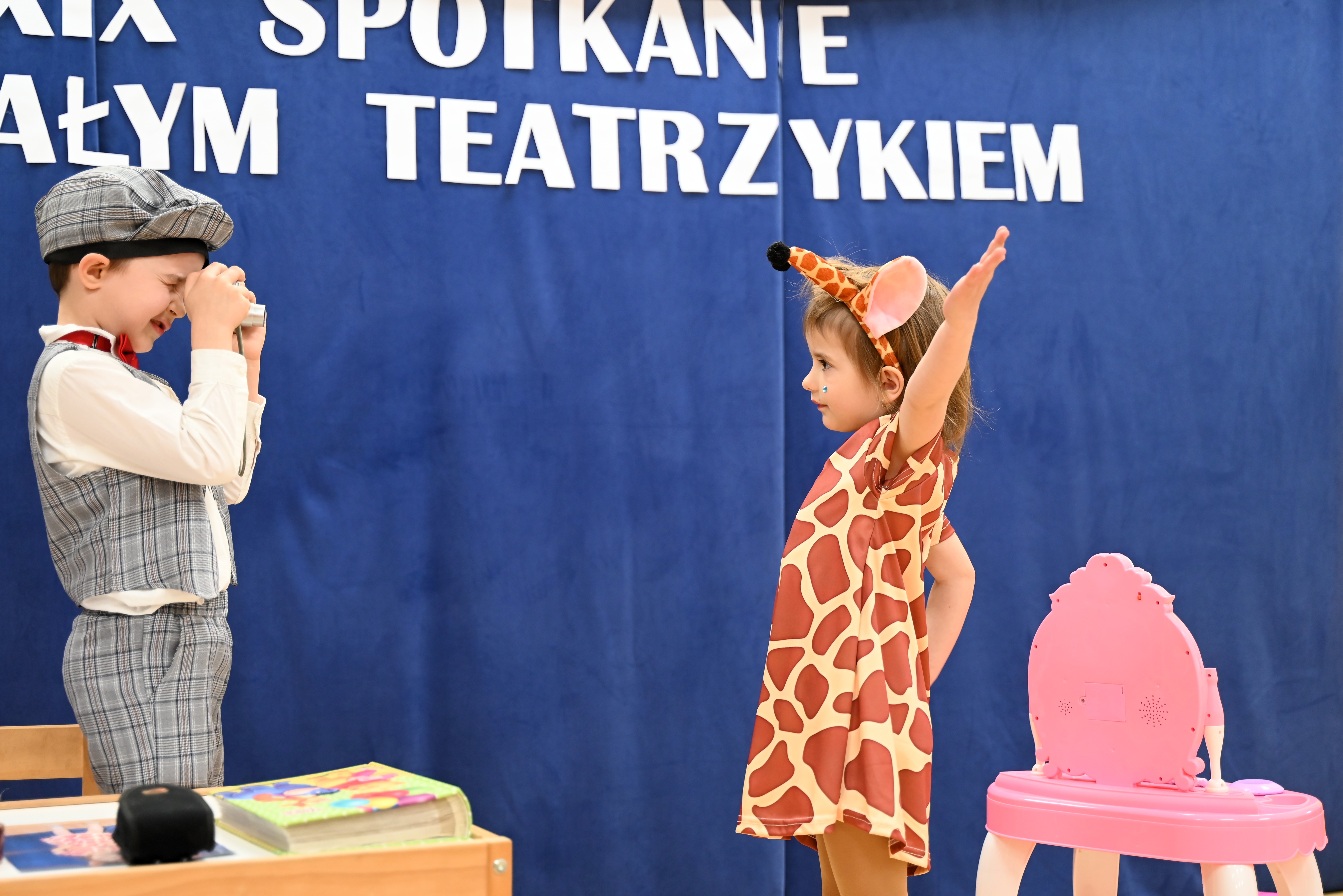 Najmłodsi uczestnicy z ogromnym zaangażowaniem zaprezentowali swoje umiejętności, wcielając się w różnorodne postacie. Barwne, dopracowane stroje, pomysłowe scenografie oraz pięknie odegrane scenki sprawiły, że widzowie mogli choć na chwilę przenieść się do świata dziecięcej wyobraźni – pełnego magii, humoru i wzruszeń.