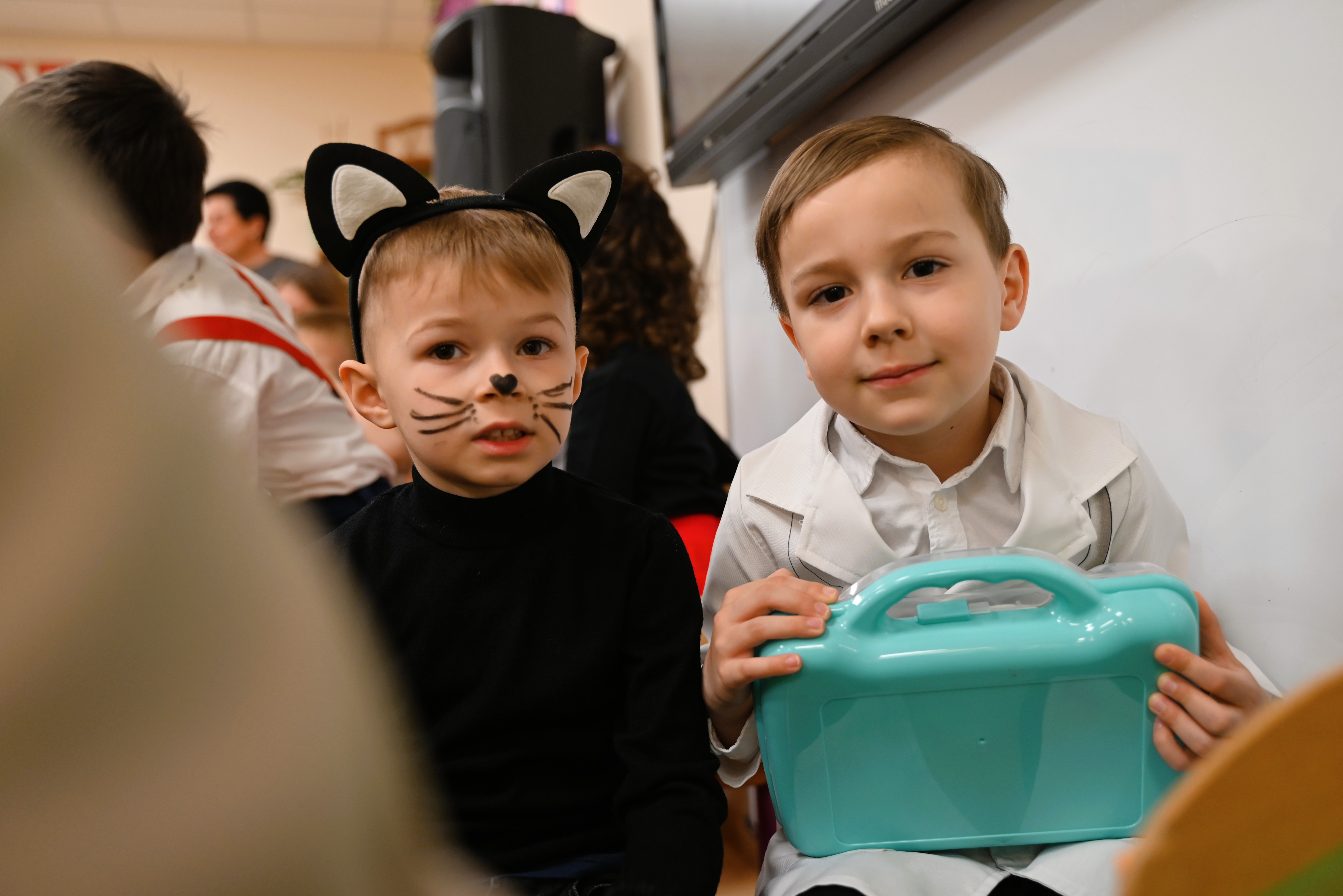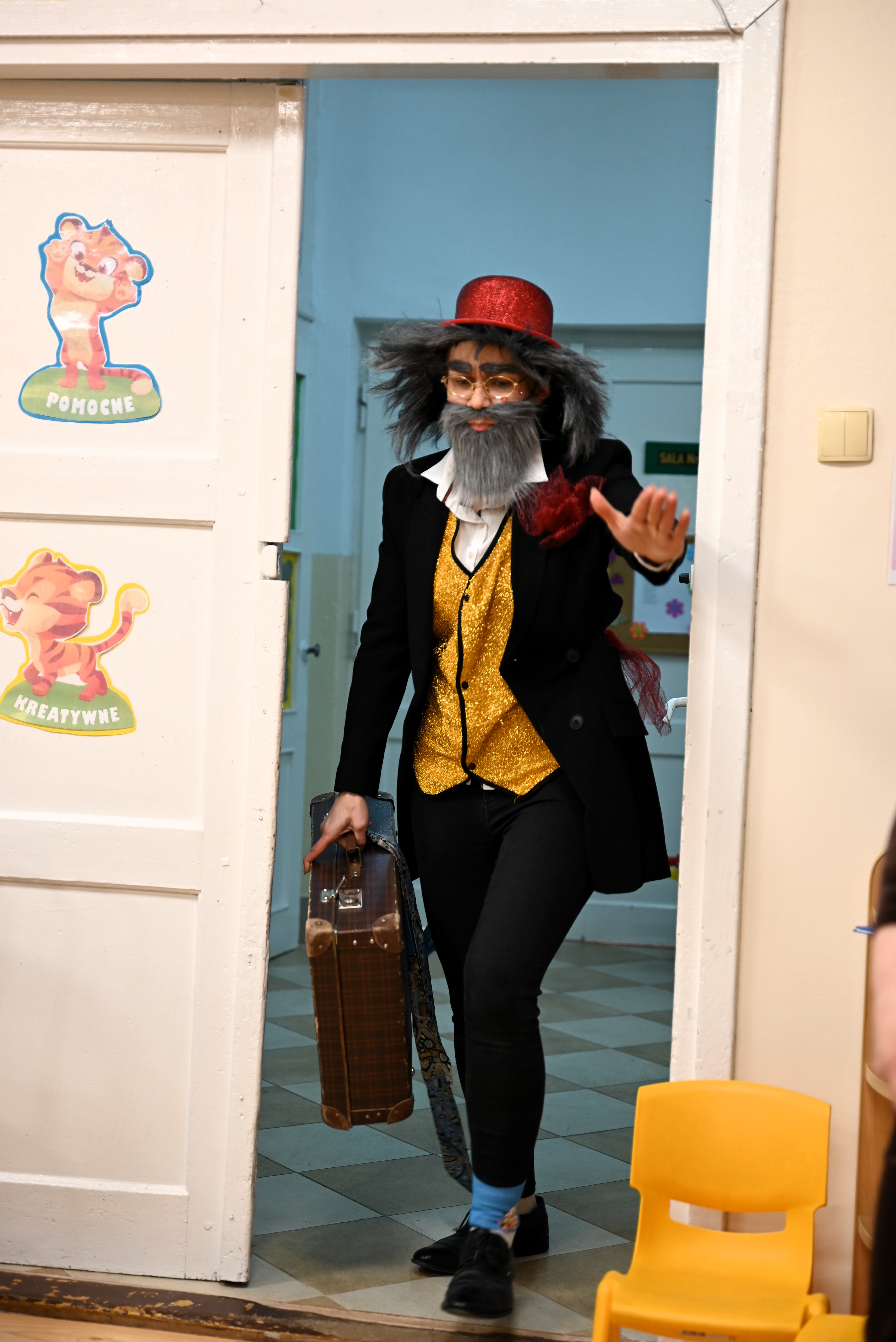 Wyjątkowym momentem spotkania była wizyta Pana Kleksa, który swoją obecnością wprowadził wszystkich w niezwykły, bajkowy nastrój. Dzieci z zachwytem reagowały na jego pojawienie się, a uśmiechy nie znikały z ich twarzy przez całe wydarzenie.