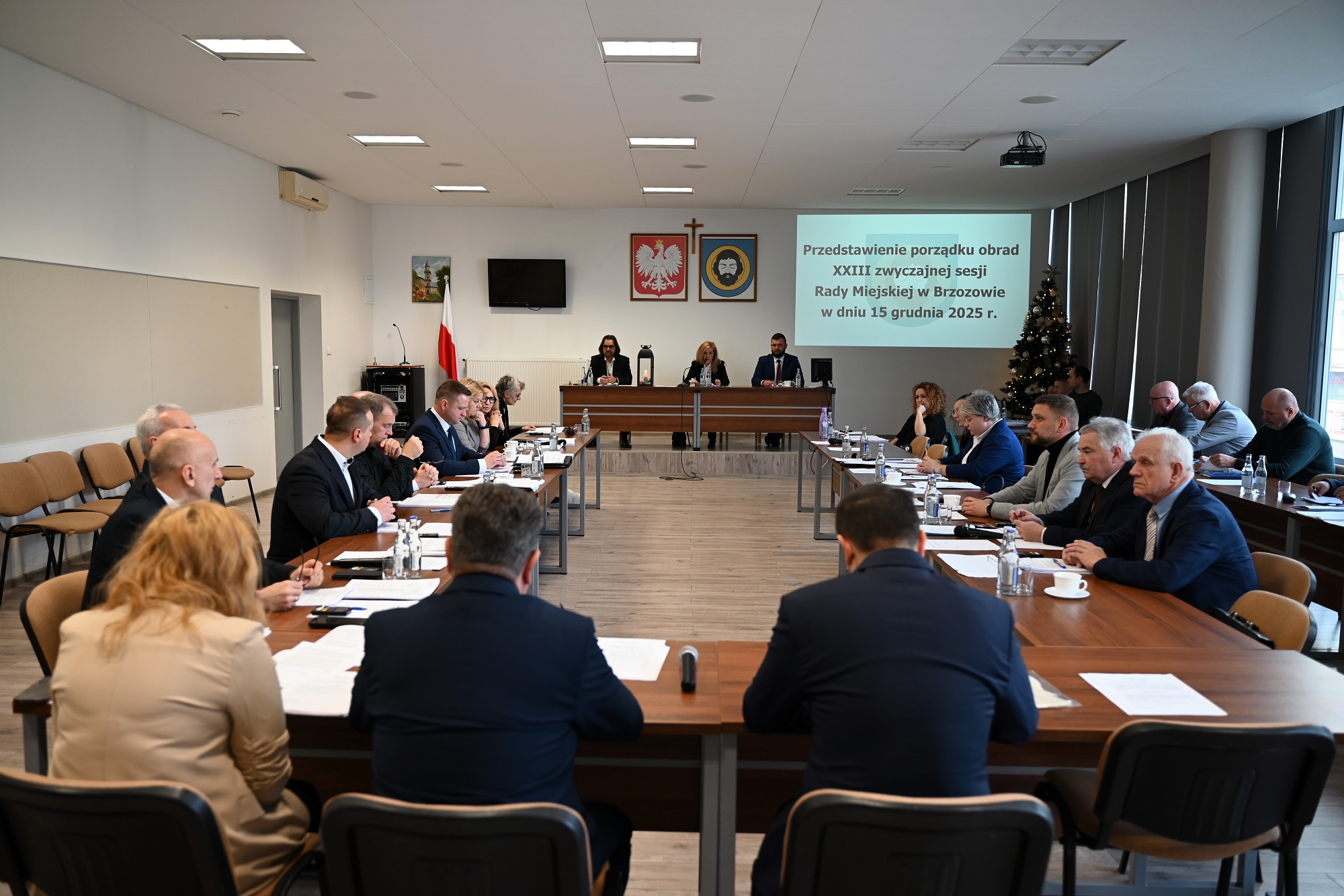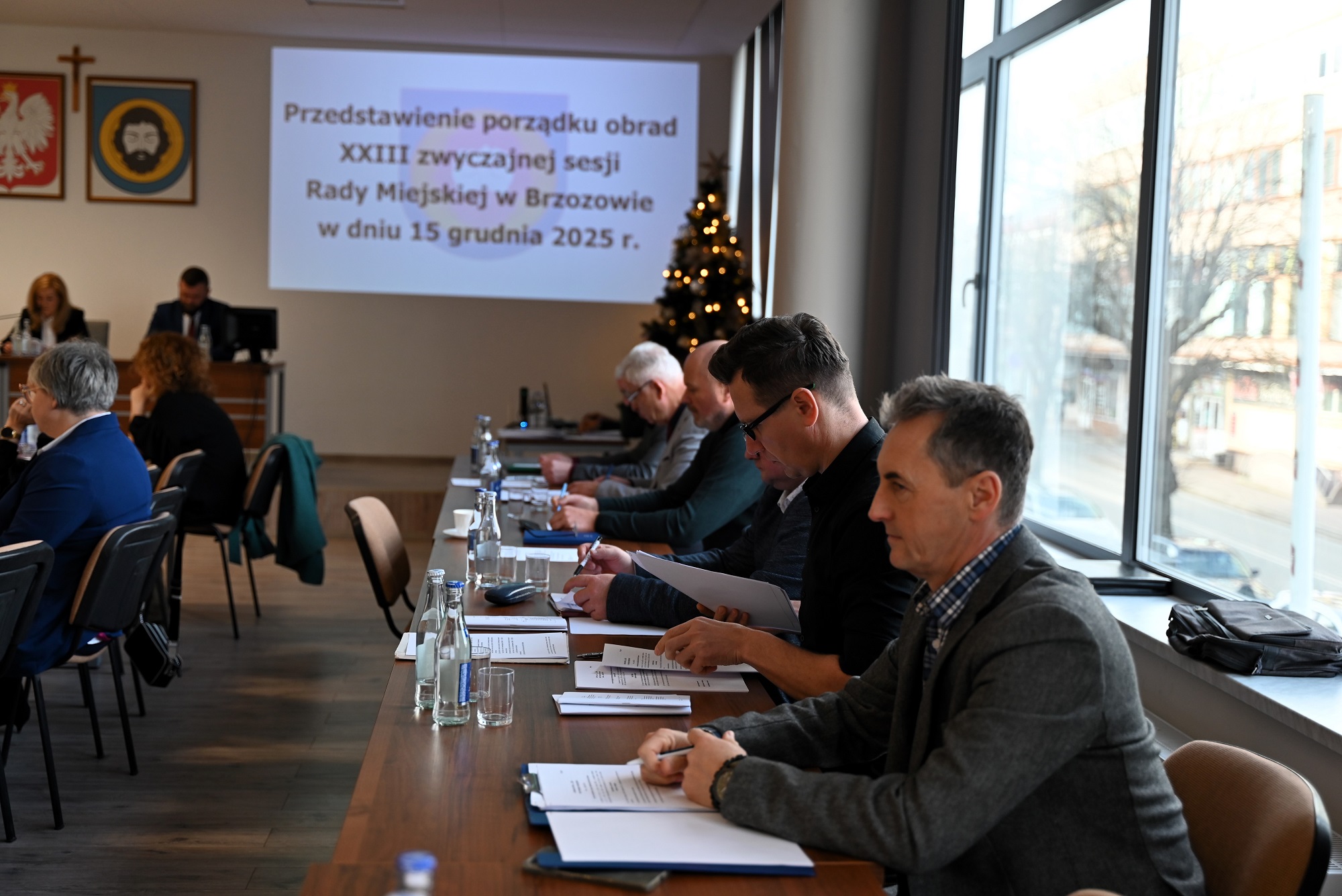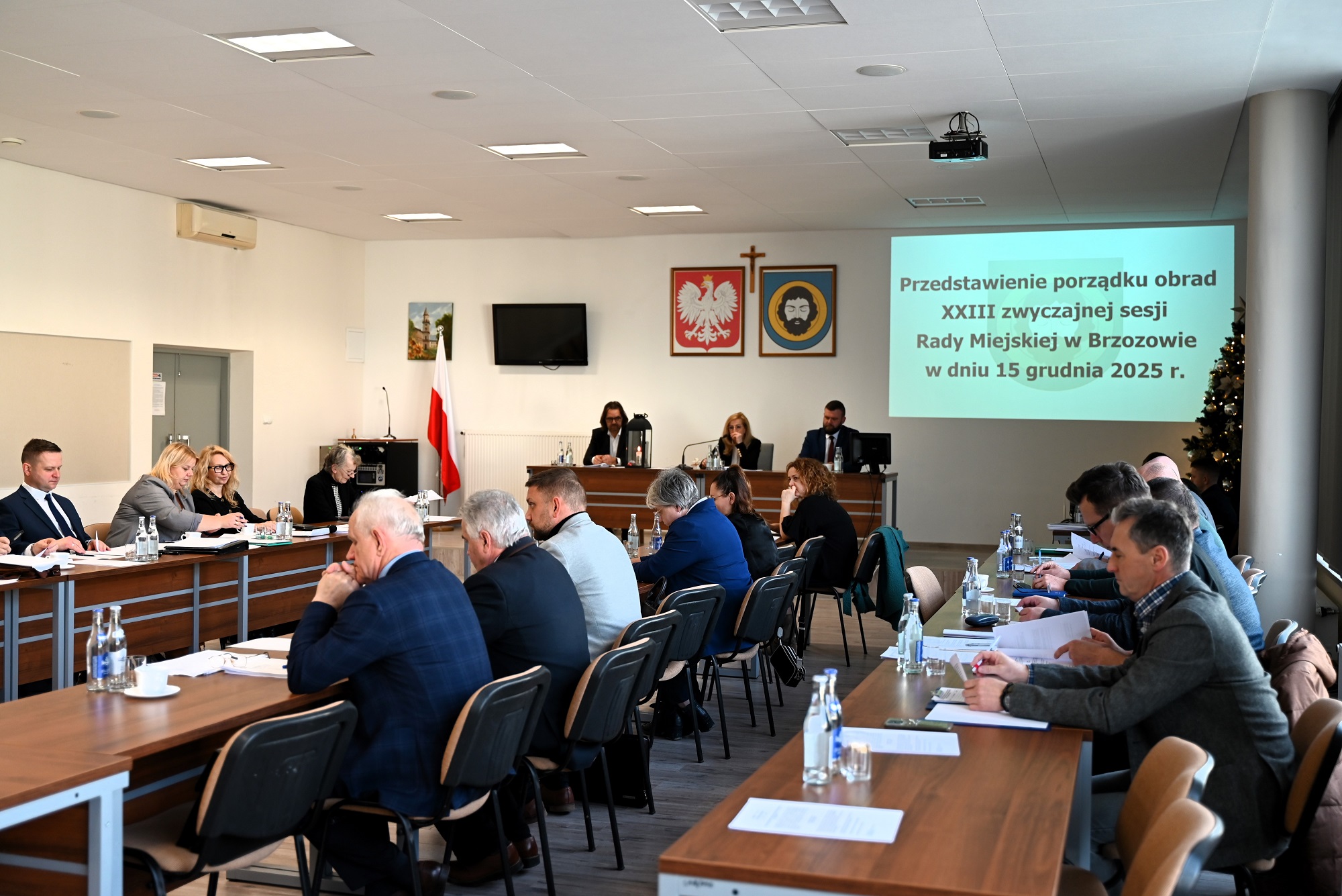 W obradach uczestniczyli Burmistrz Brzozowa Szymon Stapiński, jego zastępca Mariusz Bieńczak, Sekretarz Gminy Brzozów Waldemar Och, Skarbnik Anna Konieczna oraz naczelnicy, a także sołtysi i przewodniczący zarządów osiedli. Na zakończenie sesji przewodnicząca Dorota Kamińska złożyła wszystkim życzenia świąteczne.