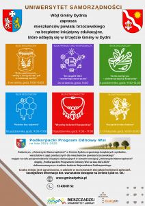 Wójt gminy Dydnia ma przyjemność zaprosić mieszkańców powiatu brzozowskiego na bezpłatne warsztaty. W związku z realizacją przez Gminę Dydnia zadania pn.:„Uniwersytet Samorządności w Gminie Dydnia – organizacja bezpłatnych wykładów, warsztatów i zajęć praktycznych dla mieszkańców powiatu brzozowskiego” 6 października 2023 w godzinach od 9.00 – 15.00 odbędą się bezpłatne wykłady pt. “Dzika medycyna – ziołowe przepisy Szeptuchy” Będą to warsztaty o sposobie zbierania i przetwarzania roślin, jak również korzyściach stosowania roślin w celach leczniczych. Szkolenia w ramach bloku ekologicznego i etnograficznego poprowadzą wykładowcy z Bieszczadzkiego Uniwersytetu Ludowego.