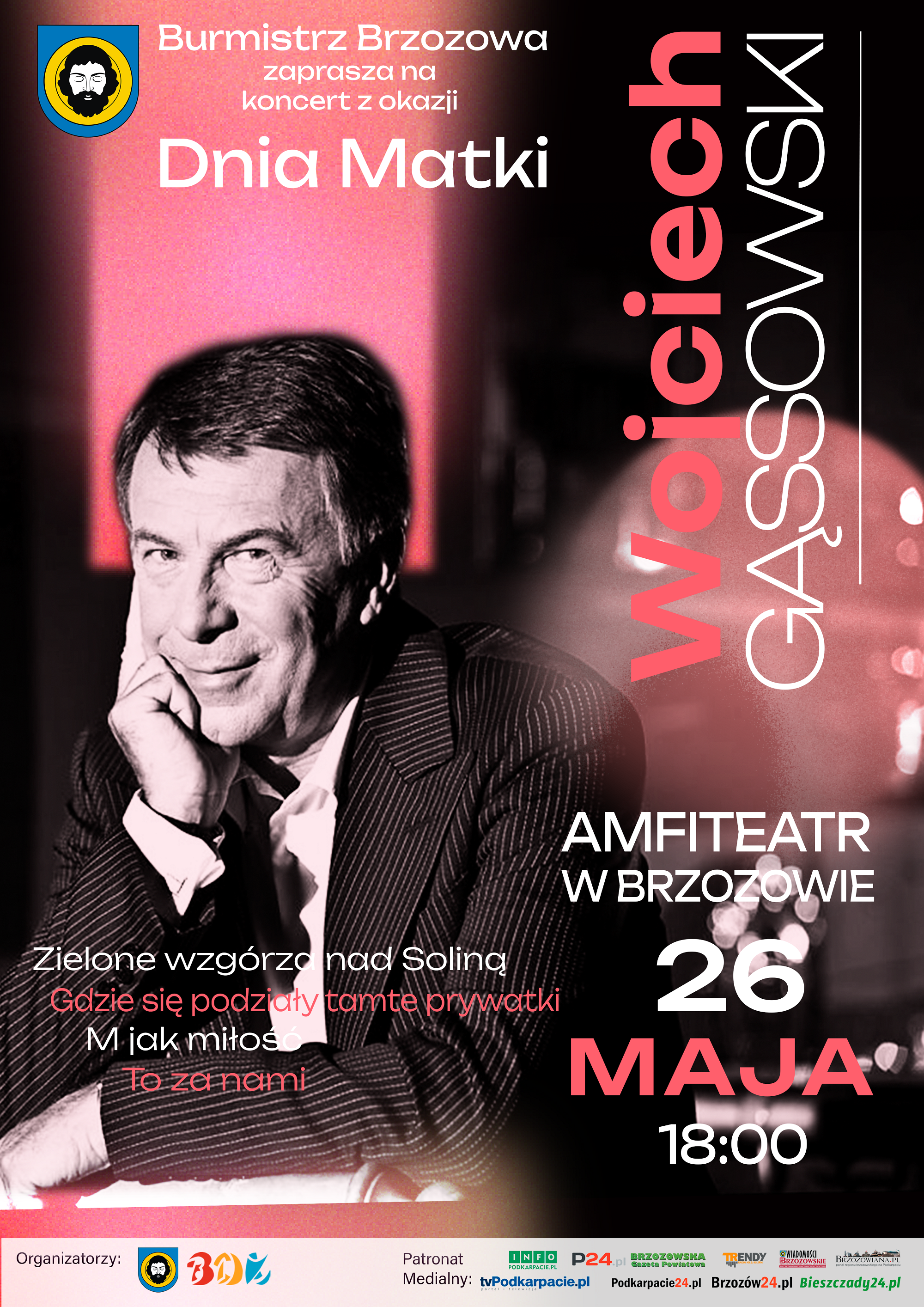 Burmistrz Brzozowa zaprasza na wyjątkowy koncert z okazji Dnia Matki. Na scenie wystąpi legenda polskiej sceny muzycznej -𝙒𝙤𝙟𝙘𝙞𝙚𝙘𝙝 𝙂𝙖̨𝙨𝙨𝙤𝙬𝙨𝙠𝙞.
