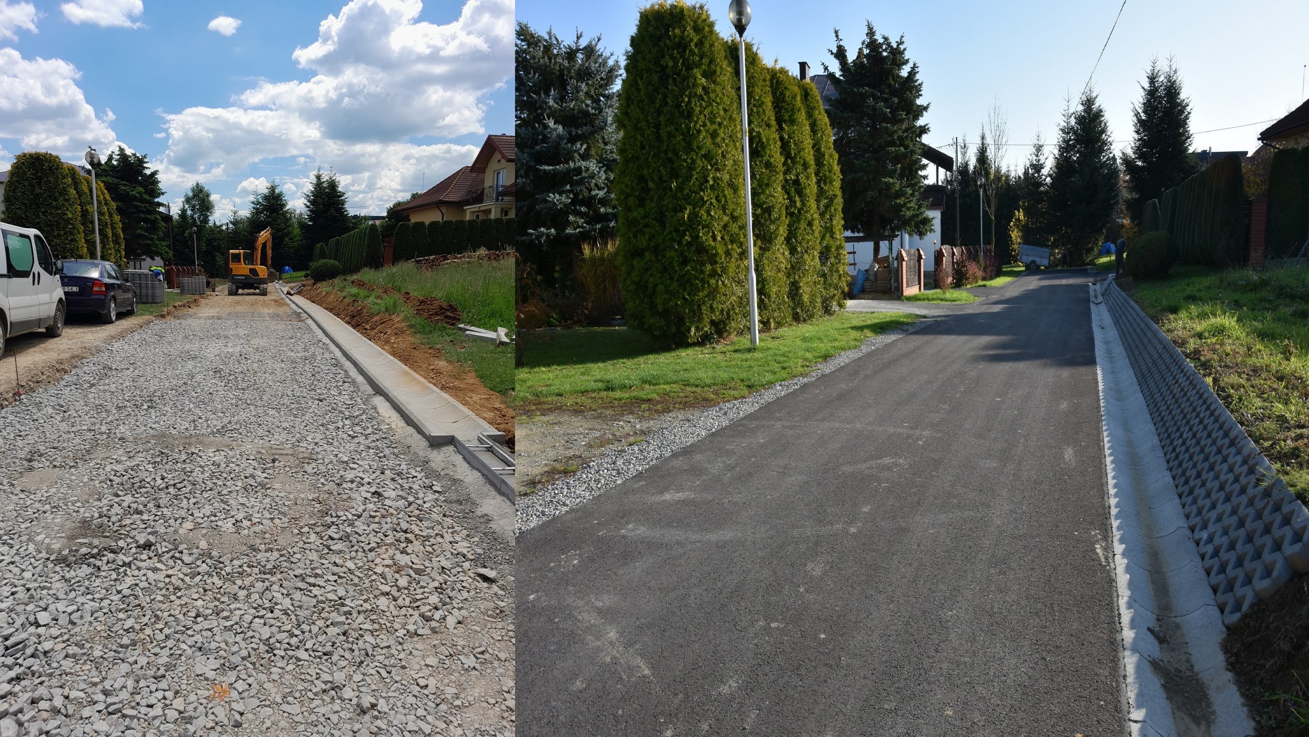 W ramach prac położono nawierzchnię z betonu asfaltowego o przybliżonej długości 145 mb i szerokości od 4 do 5 m. Ponadto wykonano pobocza z kruszywa łamanego oraz częściowo z elementów betonowych (korytka betonowe), zjazdy indywidualne do posesji prywatnych oraz umocniono skarpę przydrożną.