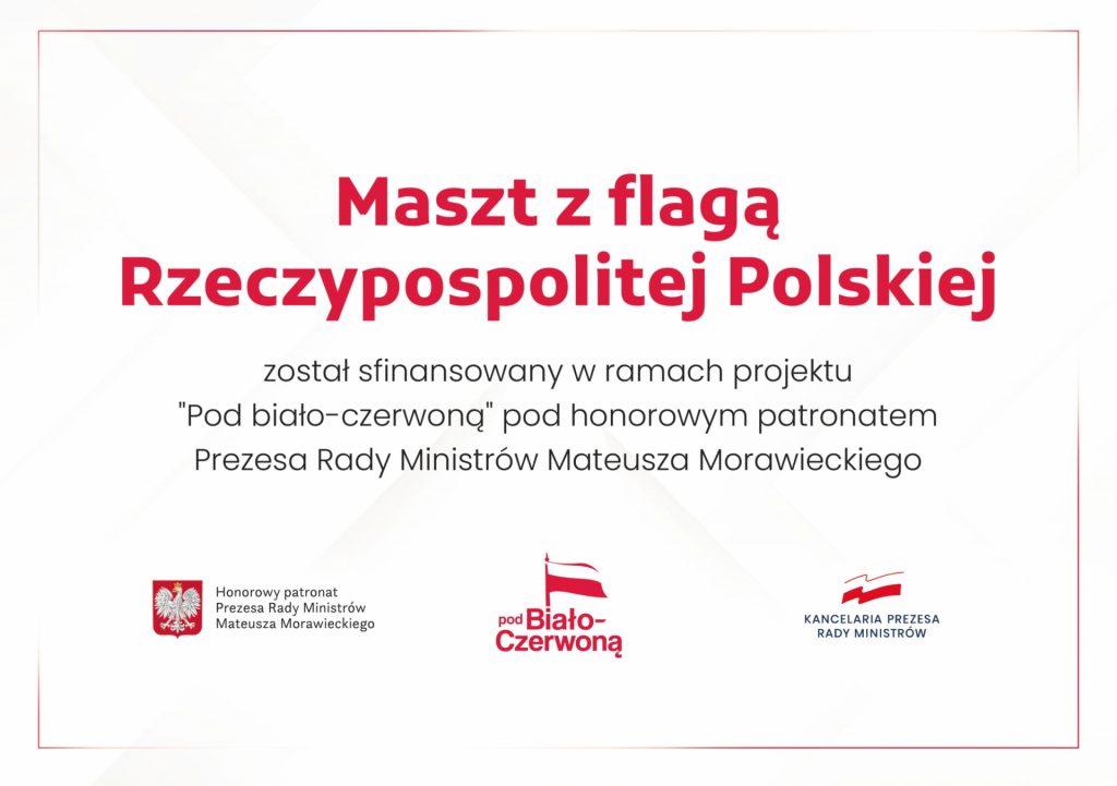 Dzięki licznym głosom poparcia wyrażonym przez mieszkańców w formie online (oddano 600 głosów, co stanowi 120% wymaganej liczby głosów) Urząd Miejski otrzymał dofinansowanie na zakup i montaż masztu z rządowego programu “Pod Biało – Czerwoną”.