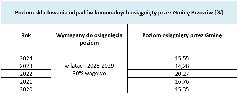 Ponadto od 2020 r. wszystkie gminy wyliczają nowy poziom, tzw. poziom składowania. Gminy są obowiązane nie przekraczać poziomu składowania w wysokości: