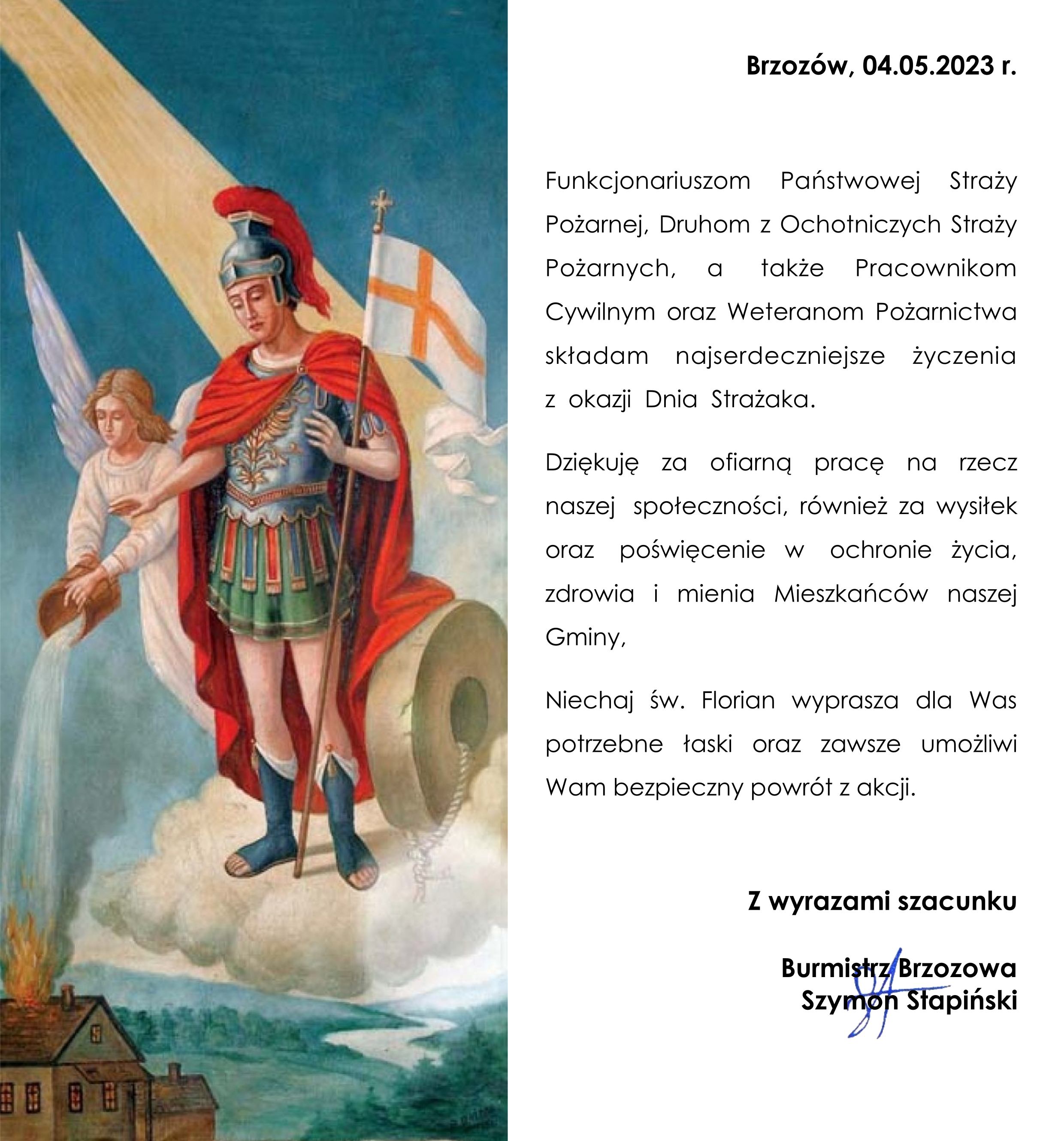 Życzenia Burmistrza Brzozowa z okazji Dnia Strażaka