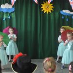 Ciekawe rekwizyty, dekoracje, stroje, gra aktorska, a także umiejętność posługiwania się językiem angielskim sprawiły, że występ trzylatków bardzo się podobał i został nagrodzony głośnymi brawami. Po tak brawurowym rozpoczęciu nastąpiła cześć konkursowa podczas której wystąpili soliści z poszczególnych przedszkoli. Wszyscy zaprezentowali się bardzo dobrze, pokazując swoje umiejętności sceniczne oraz dziecięcą wrażliwość. Zostali nagrodzeni pamiątkowymi dyplomami, a także upominkami ufundowanymi przez organizatorów i gości. Podziękowania i gratulacje otrzymali również dyrektorzy przedszkoli oraz nauczyciele przygotowujący dzieci do udziału w konkursie.
