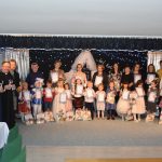 Zgromadzona publiczność włączała się do wspólnego śpiewu kolęd, co wpłynęło na miłą, radosną atmosferę uroczystości. Wszystkie przedszkolaki zaprezentowały się bardzo ładnie i niezwykle uroczo. Piękne stroje, rekwizyty, a przede wszystkim śpiew spowodowały, że był to prawdziwy koncert. Dostrzegli to słuchający i nagrodzili uczestników spotkania gromkimi brawami. Skierowali również słowa podziękowania, uznania i gratulacje dla dzieci, opiekunów oraz organizatorów przeglądu. ,,Mali artyści’’ otrzymali dyplomy, a także nagrody rzeczowe w postaci aniołka i książki z kolędami, przygotowane przez gospodarzy.
