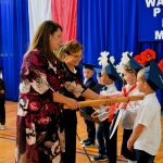 Uroczystość rozpoczęła od powitania gości p.o. dyrektora szkoły Maria Pelc, a po niej z krótkim programem artystycznym wystąpili uczniowie klas starszych. Następnie zaprezentowali się pierwszoklasiści pokazując zebranym, że potrafią pięknie śpiewać oraz recytować wierszyki.