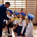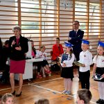 Druga część to popis pierwszoklasistów. Dzieci zostały oficjalnie przyjęte do grona uczniów Szkoły Podstawowej w Zmiennicy. Podczas występu, do którego zostały przygotowane przez p. Lucynę Ostrowską, pierwszaki pokazały, że potrafią pięknie śpiewać i recytować wiersze. Najważniejszą częścią uroczystości, na którą wszyscy czekali, było ślubowanie oraz pasowanie wielkim ołówkiem przez Dyrektora Szkoły Jana Piotrowskiego. Uczniowie klasy I głośno i z przekonaniem przyrzekali być dobrymi i pilnymi uczniami oraz rzetelnie wypełniać swoje obowiązki, o czym przypominać im będą otrzymane dyplomy. Wszystkim pierwszoklasistom w tak ważnym dla nich dniu życzymy wielu sukcesów na nowej drodze obowiązków szkolnych. Dzieci otrzymały także drobne upominki od przybyłych gości, co z pewnością sprawiło, że ten dzień jeszcze bardziej zapadnie im w pamięć.