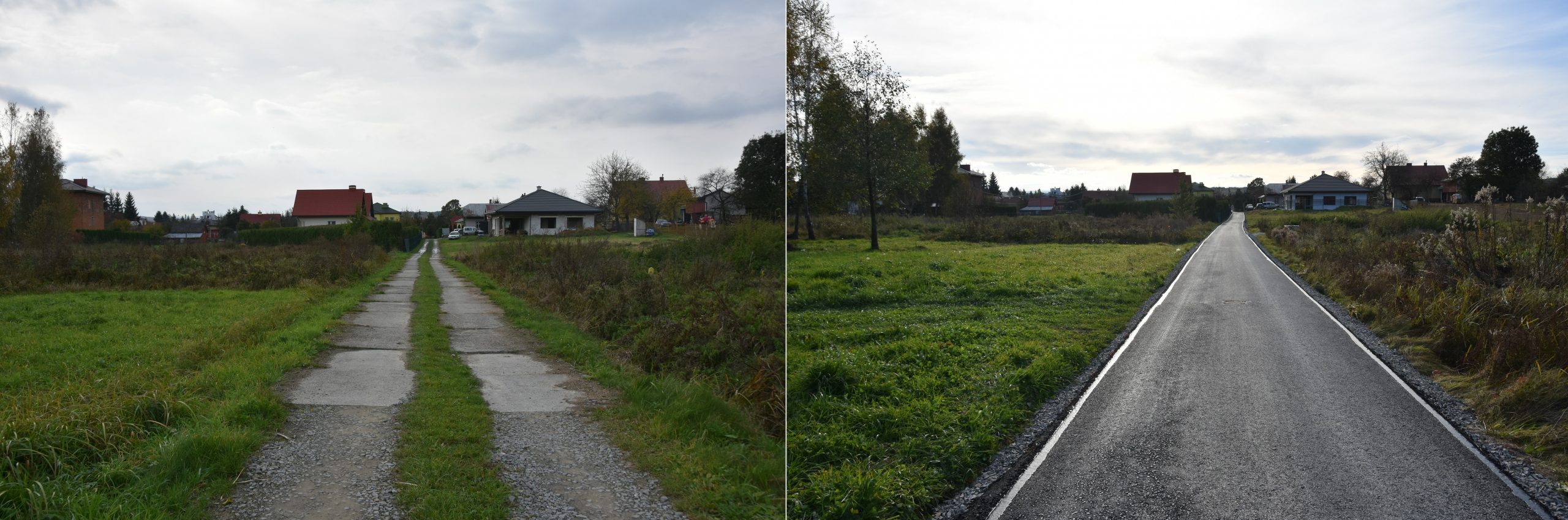 W ramach inwestycji, wykonano ponad 800mb dróg o nawierzchni asfaltowej oraz 240mb drogi o nawierzchni żwirowej. Wykończone zostały poprzez obsypanie poboczy oraz ułożenie elementów brukarskich w postanie cieków betonowych przy części jezdni. Zadania sfinansowane zostały ze środków rządowych, funduszu sołeckiego i własnego udziału gminy.
