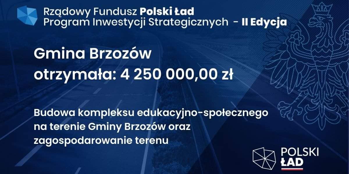 Kolejne środki finansowe z Rządowego Funduszu Polski Ład Program Inwestycji Strategicznych – II Edycja dla Gminy Brzozów