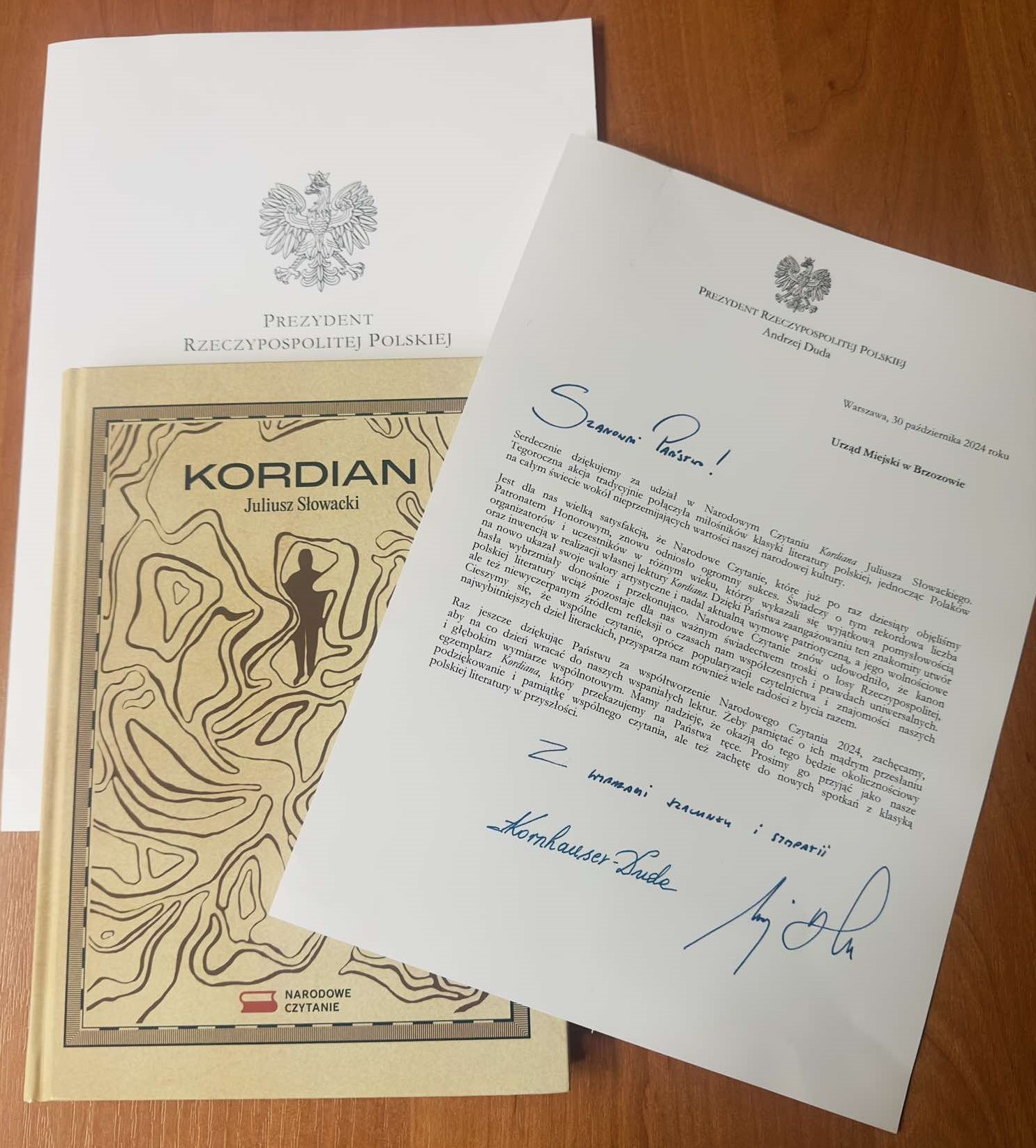 Urząd Miejski w Brzozowie otrzymał od Pary Prezydenckiej oficjalne podziękowanie wraz z okolicznościowym egzemplarzem „Kordiana” za udział w trzynastej edycji „Narodowego Czytania”.