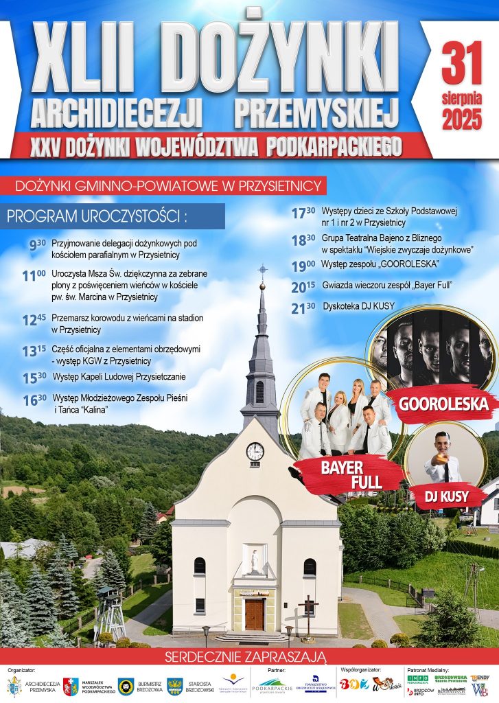Serdecznie zapraszamy na XLII Dożynki Archidiecezji Przemyskiej, XXV Dożynki Województwa Podkarpackiego oraz Dożynki Gminno – Powiatowe w Przysietnicy.
