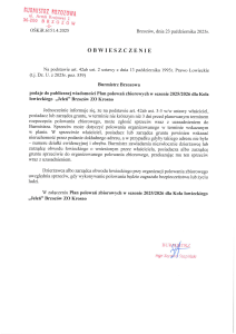 Plan polowań zbiorowych w sezonie 2025/2026 dla koła „Jeleń” Brzozów ZO Krosno