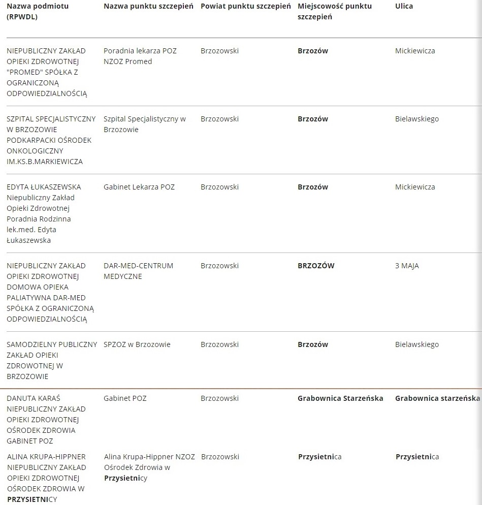 Wykaz punktów szczepień na terenie Gminy Brzozów znajduje się na stronie internetowej gov.pl/web/szczepimysie/podkarpackie